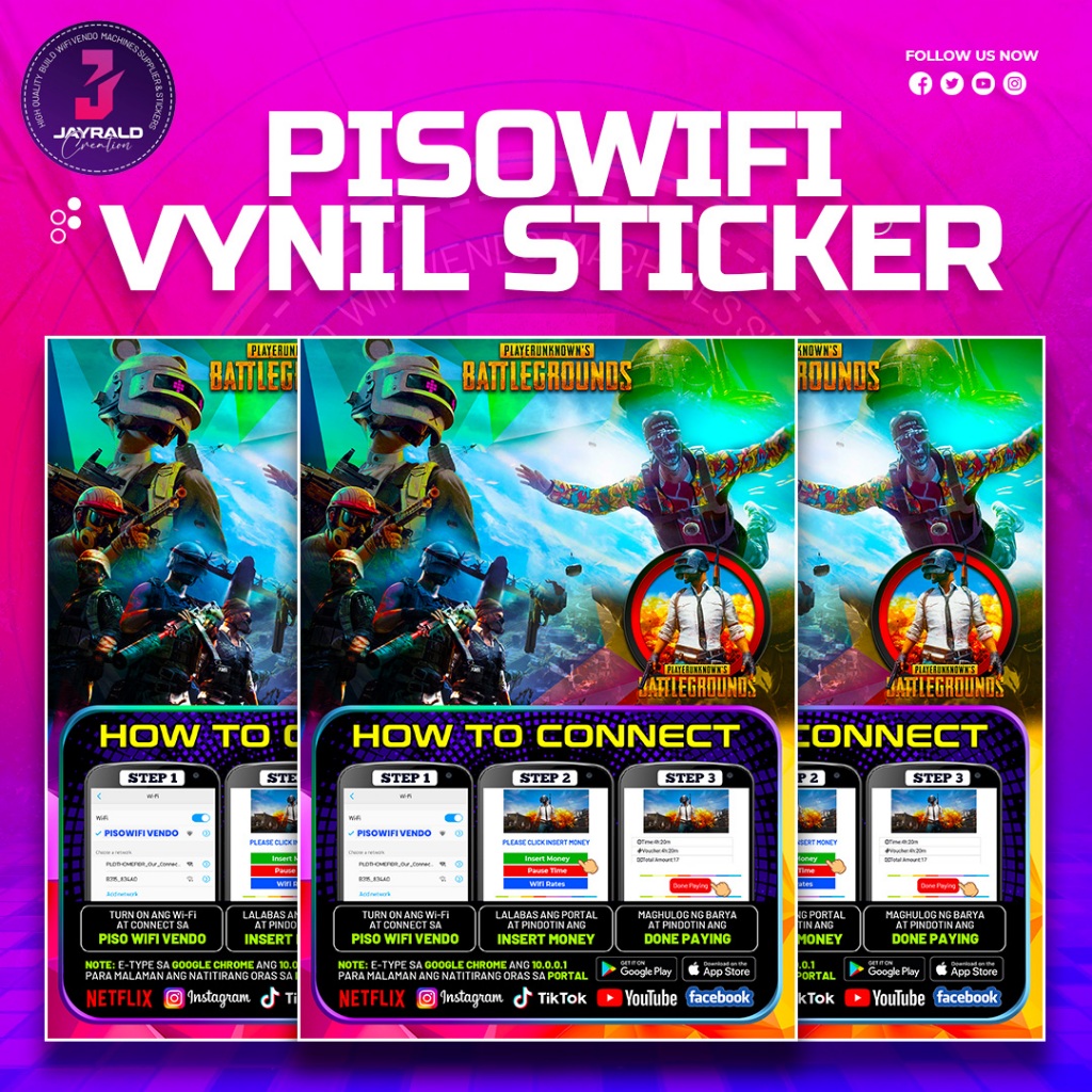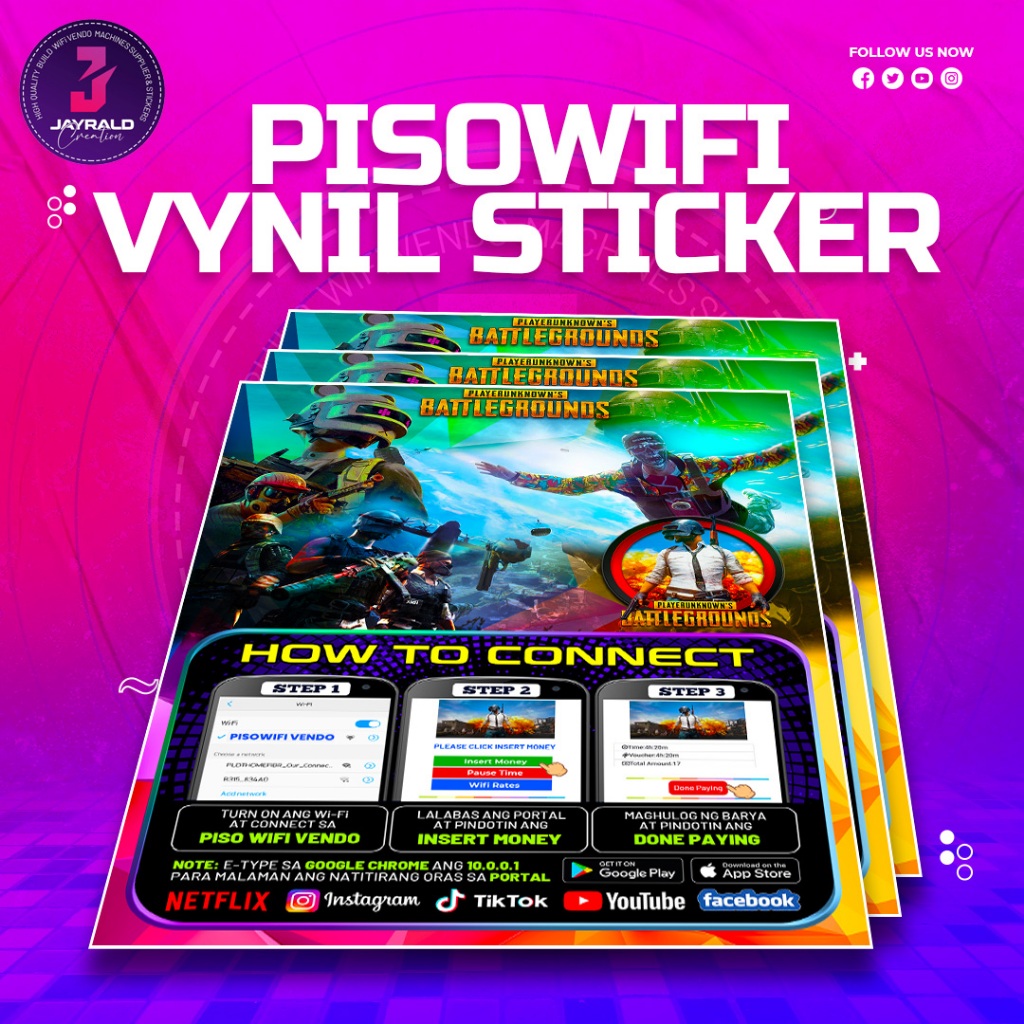 PUBG DESIGN WI-FI STIKERS A4 Size (Waterproof) LPB, PISOFI, ADO, WB, 1CLICK, iWiFi, JUANFi