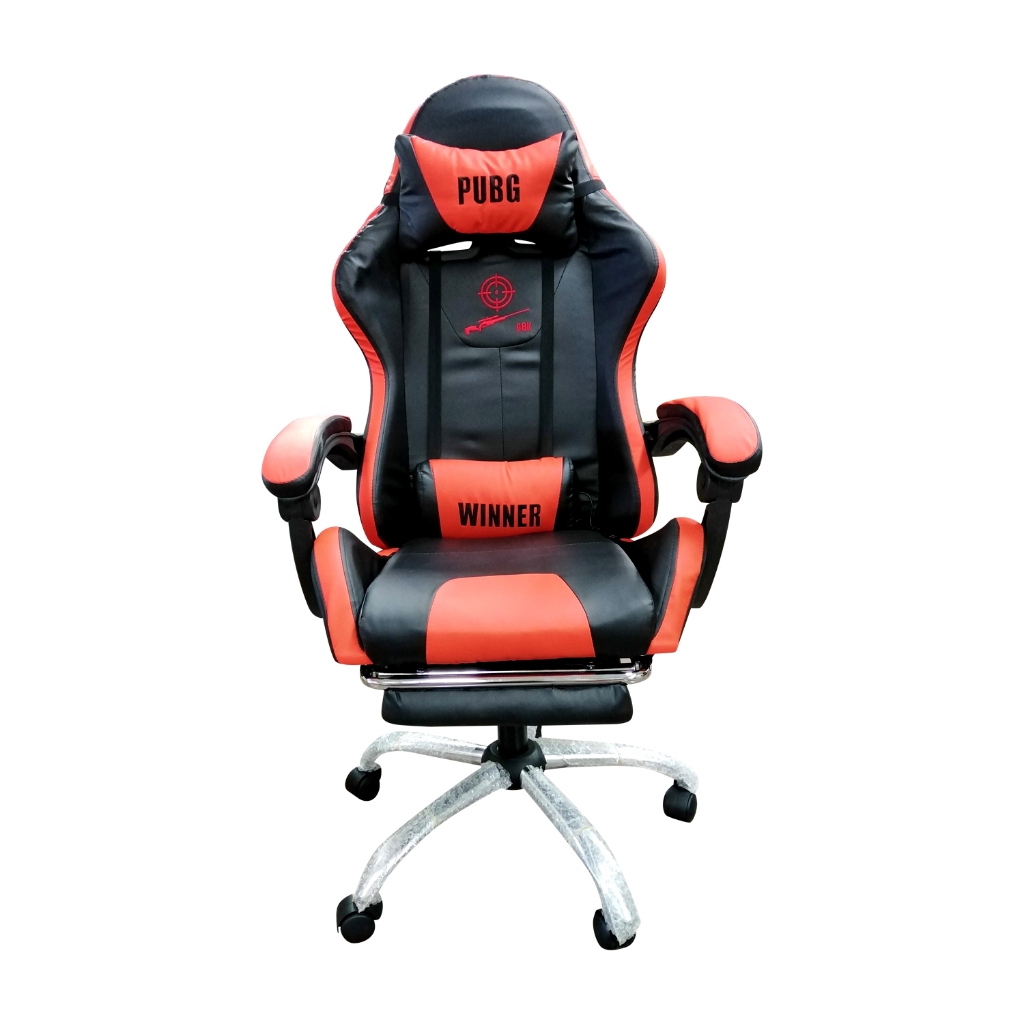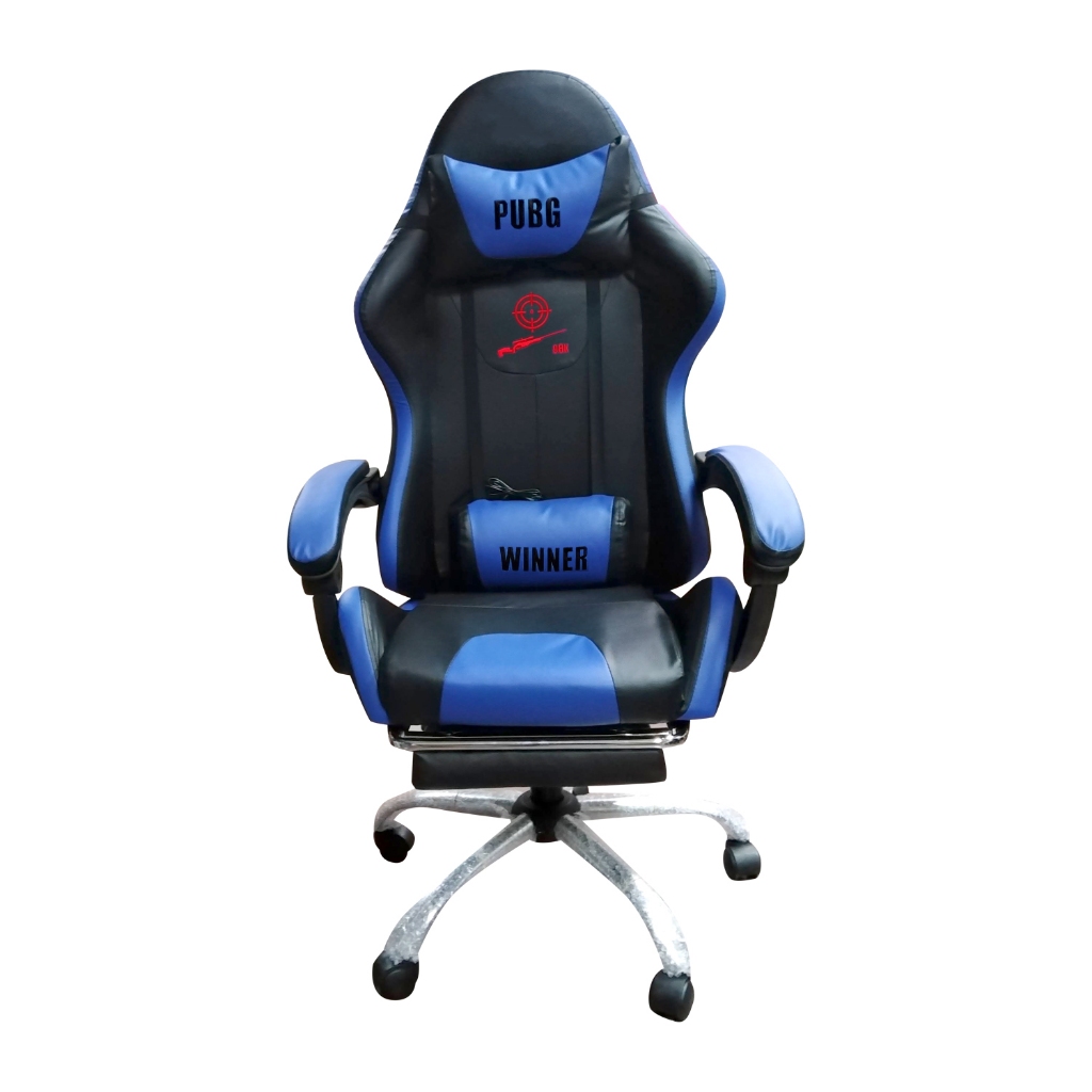 PUBG Gaming Chair with Neck pillow and Back Massage Cushion Black Color with Leg Rest