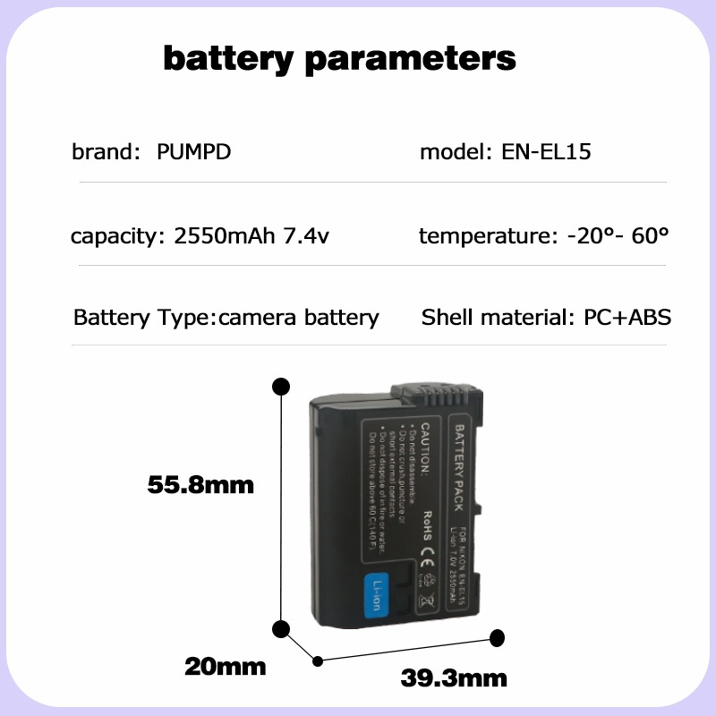 PUMPD EN-EL15 Battery Charger for Nikon D7000, D7100, D7200, D7500, Z5, Z6, Z7, Z8II