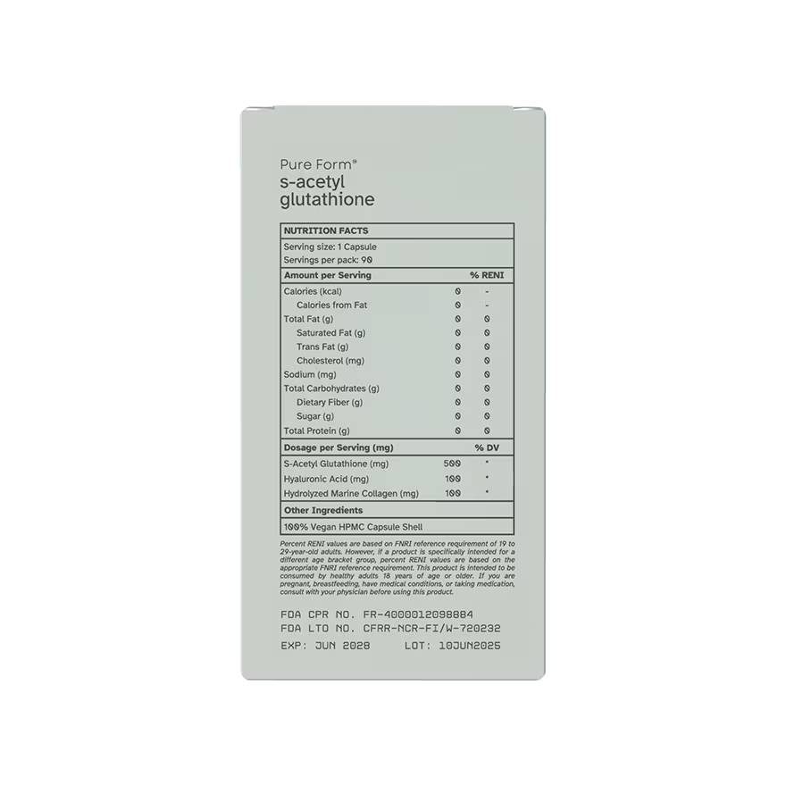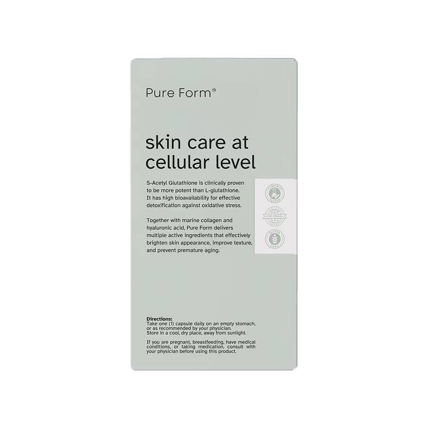 PURE FORM S-Acetyl Glutathione with Hyaluronic Acid and Collagen Capsule