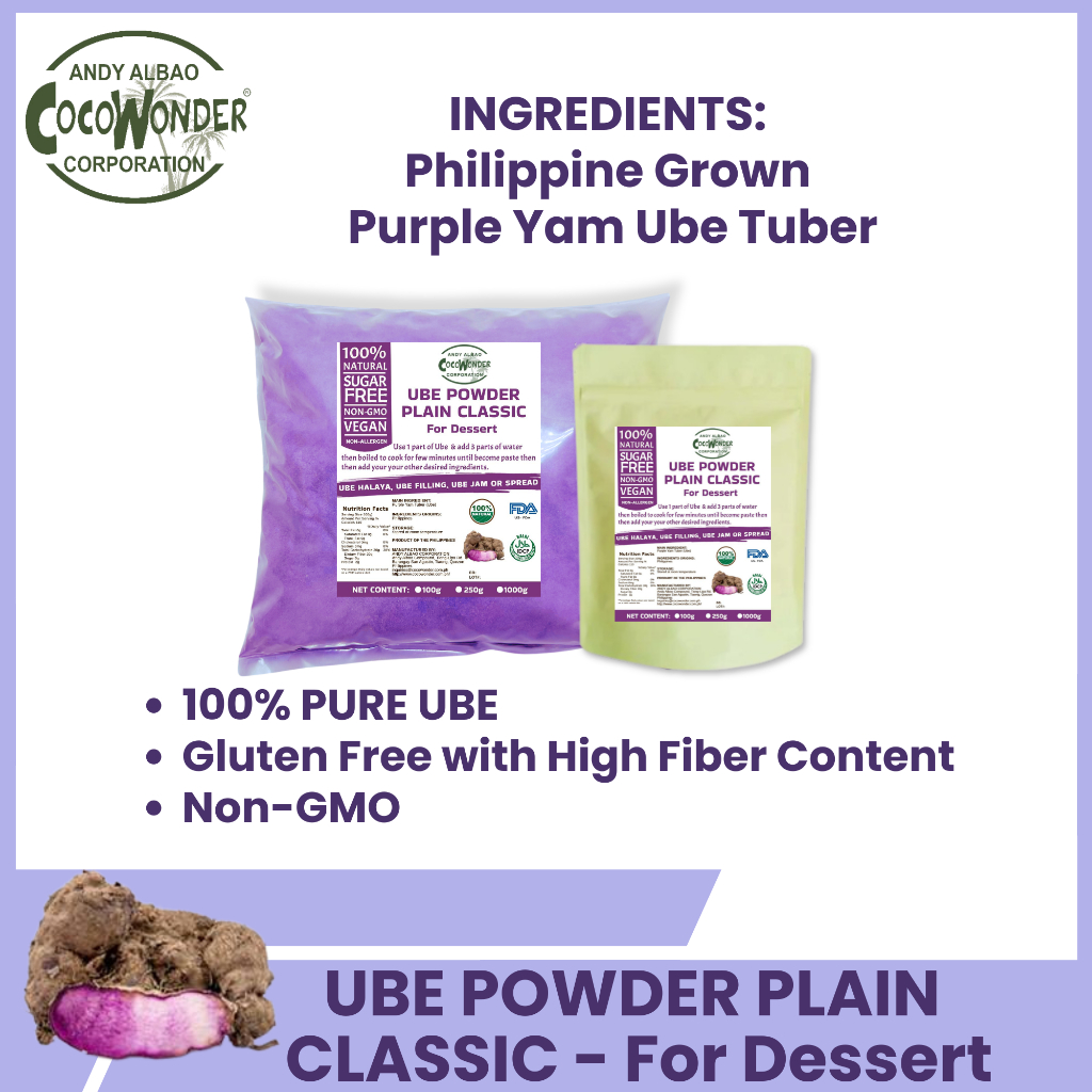 PURPLE YAM FLOUR - UBE POWDER PLAIN CLASSIC - For Dessert | COCOWONDER | 100% CERTIFIED ORGANIC