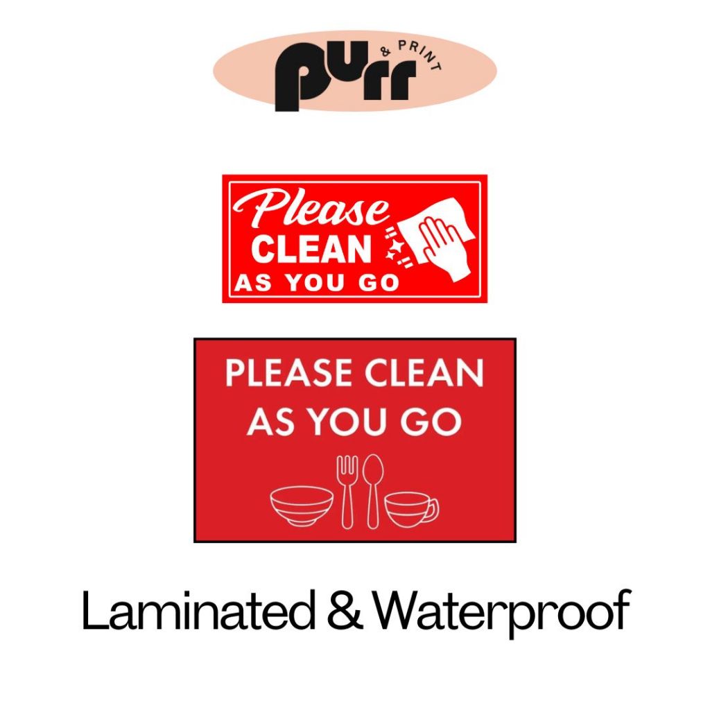 PURR & PRINT | Claygo Clean As You Go Sign Laminated Signage A4 Waterproof Fadeproof