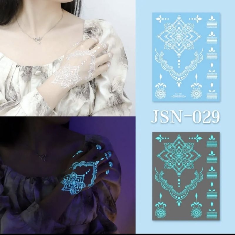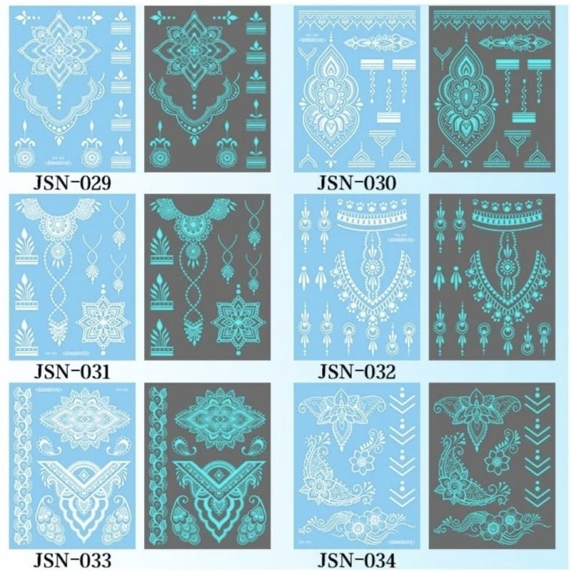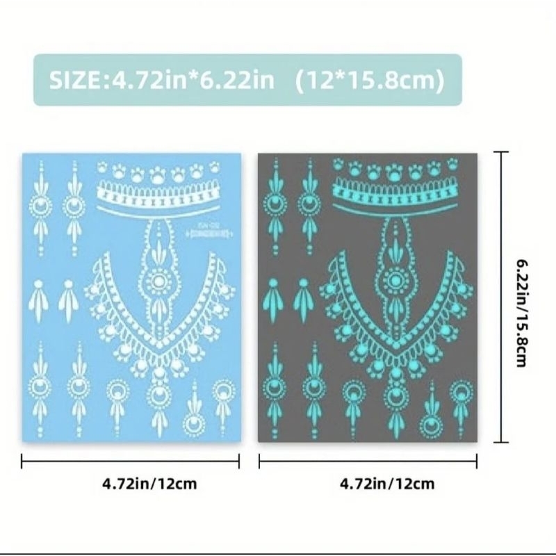 HOLO_COS Tattoo Stickers 1 Sheet Henna Stick White Color Bridal Event Henna Tattoo instant Waterproof (NOT Glow in the dark)