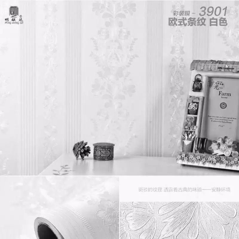 PUTIH Plain White Wall Sticker Wallpaper Minimalist Batik Motif