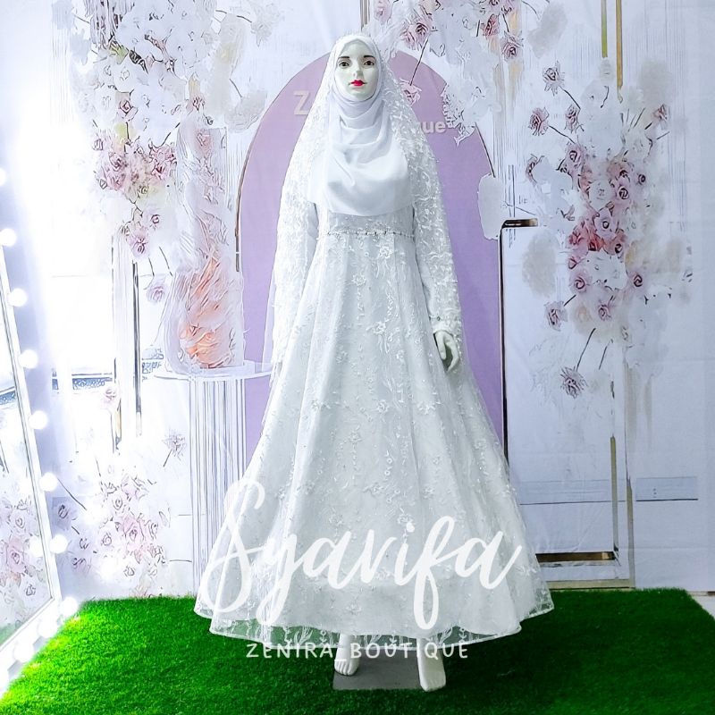 PUTIH Syarifa Wedding Dress FREE Lace And VEIL Shawl tile/White Wedding Dress/akad/Party Dress/prewedding