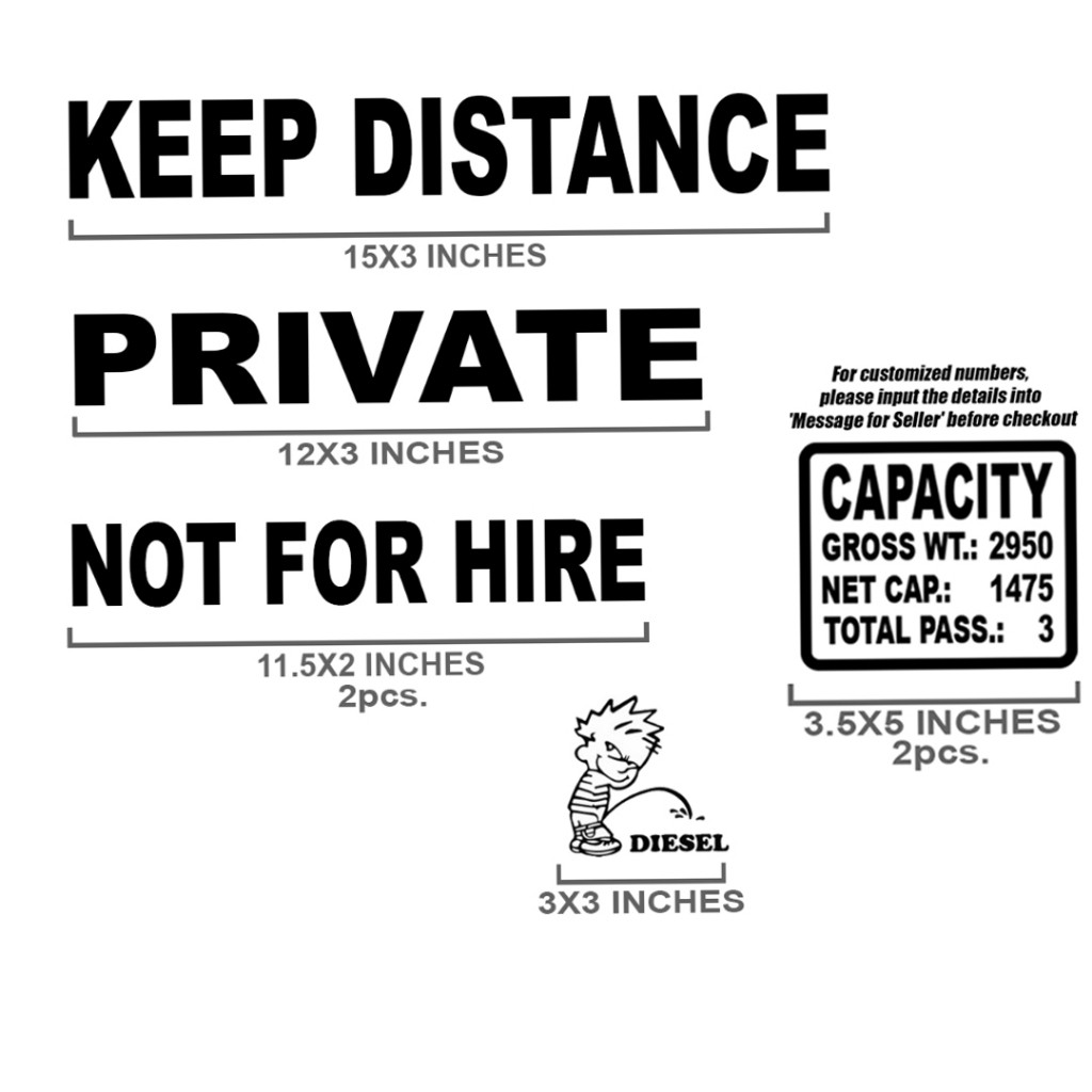 PUV PRIVATE STICKER FOR SHUTTLE TRUCK MINI VAN STICKERS LTFRB DECALS NOT FOR HIRE TRANSPORT LOGISTIC
