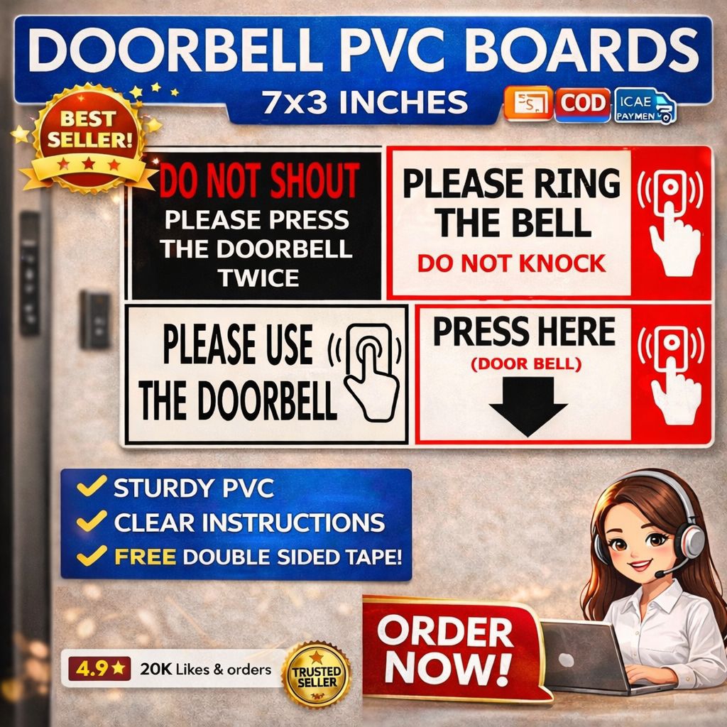 PVC BOARD DOORBELL SIGNAGE DIFFERENT COLORS AND DESIGN 7X3 INCHES WITH DOUBLE SIDED TAPE