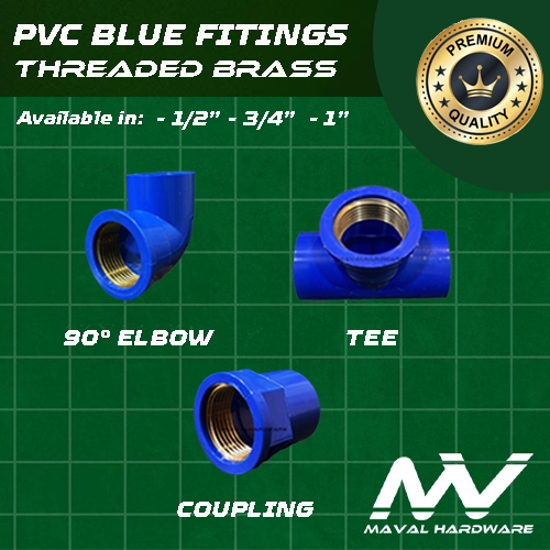 PVC Blue Fittings - (Female Brass Threaded) Coupling, Tee, EIbow; 1/2", 3/4", 1"