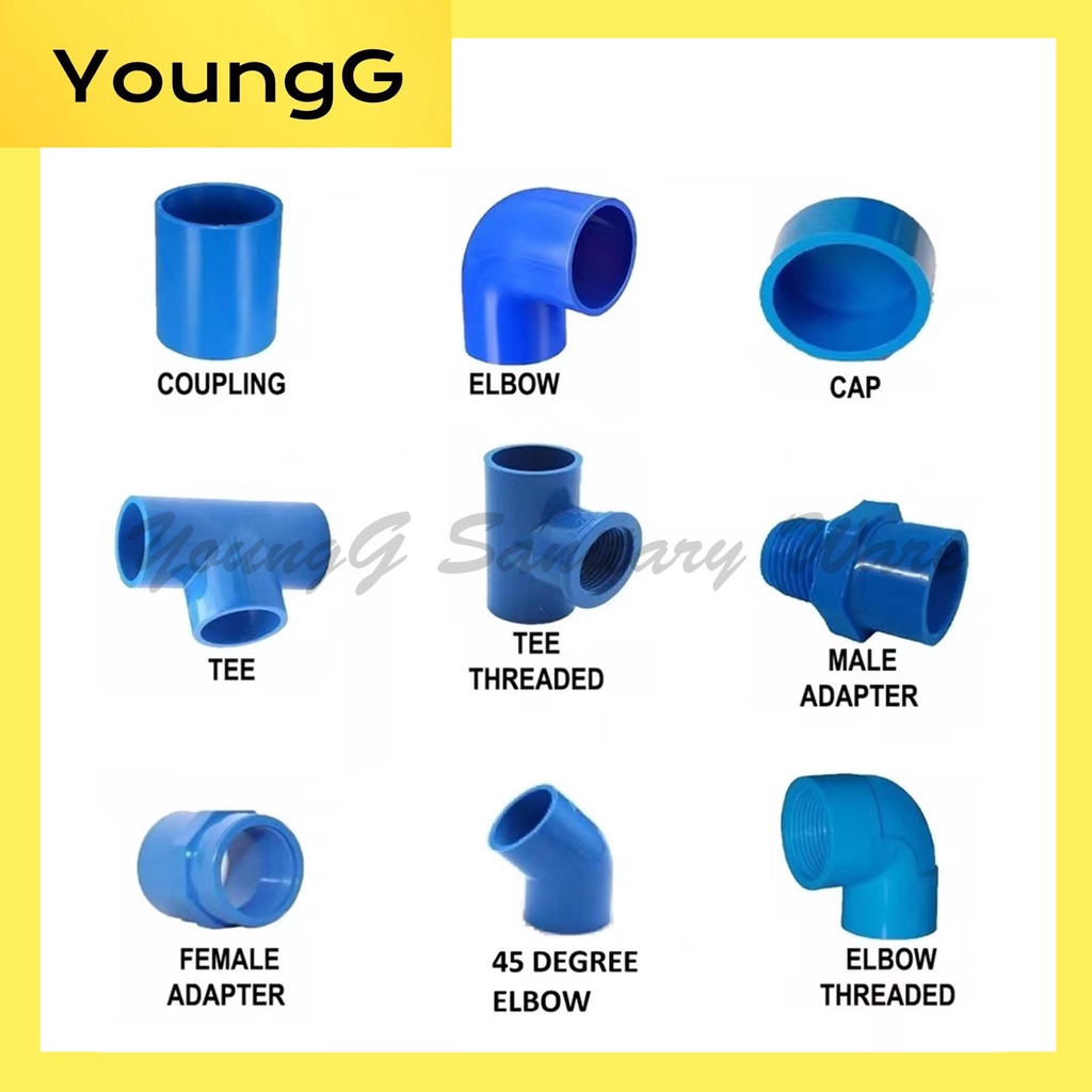 PVC Blue Fittings 1/2" ( Elbow, Tee, Coupling, Male Adaptor, Female Adapter, Cap ) Sold Per Piece