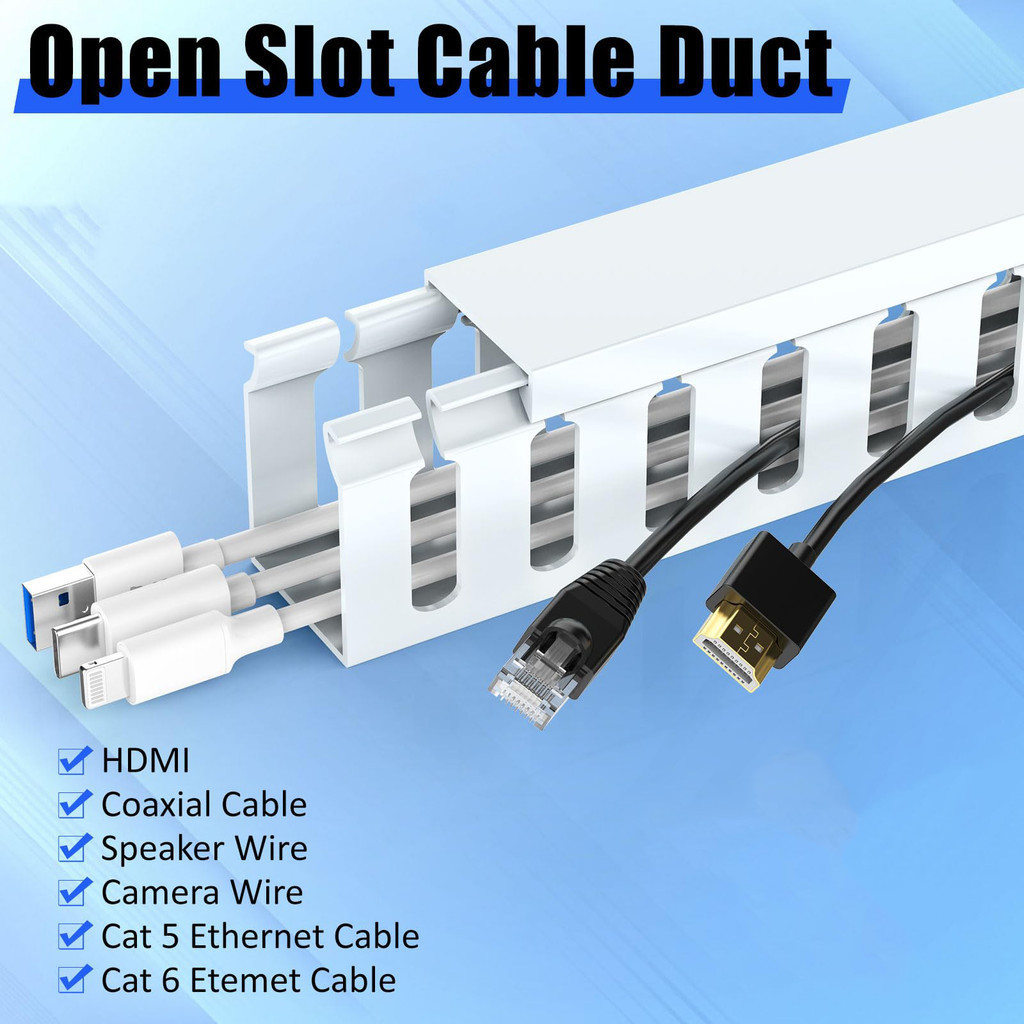 PVC Cable Tray Duct Cable Raceway Server Rack Slotted PVC cable trunking Wire Duct Cable Management Under Desk Cord Organizer
