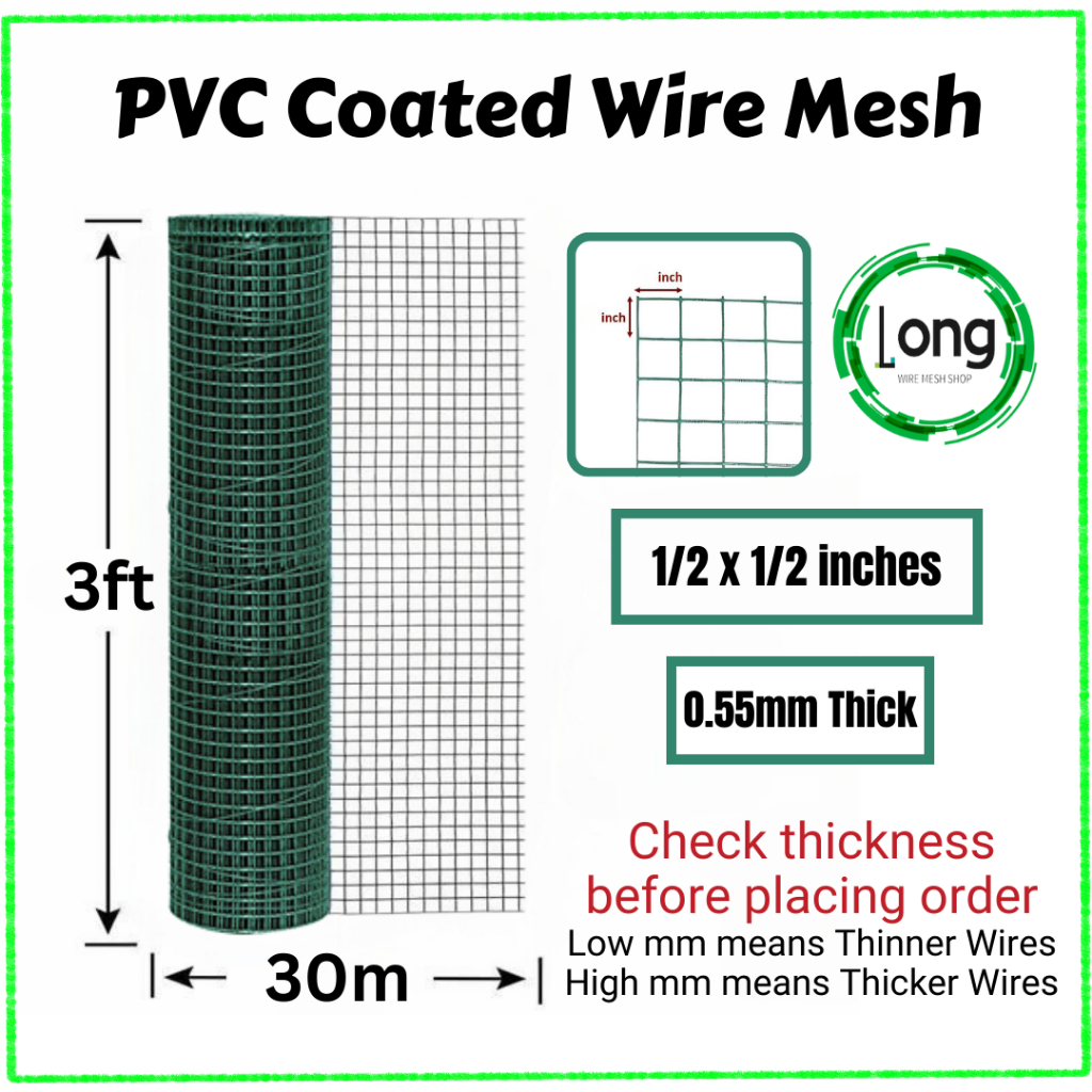 PVC Coated Galvanized Wire Mesh 30m Length Chicken Wire Green Pangbakod, Animal Cage, Plant Support