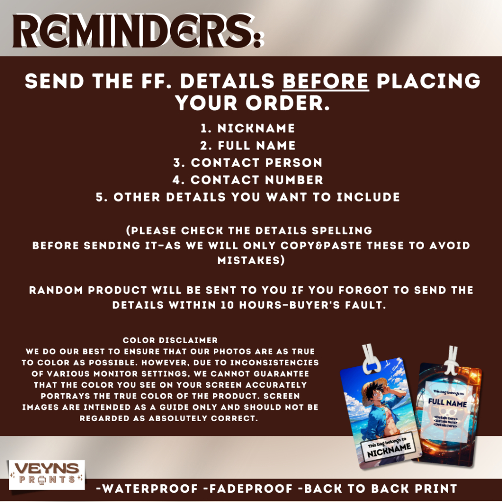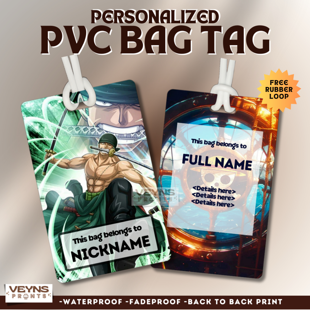 PVC/LAMINATED ONE PIECE LUFFY ZORO LUGGAGE/ BAG TAG ATM SIZE WATERPROOF