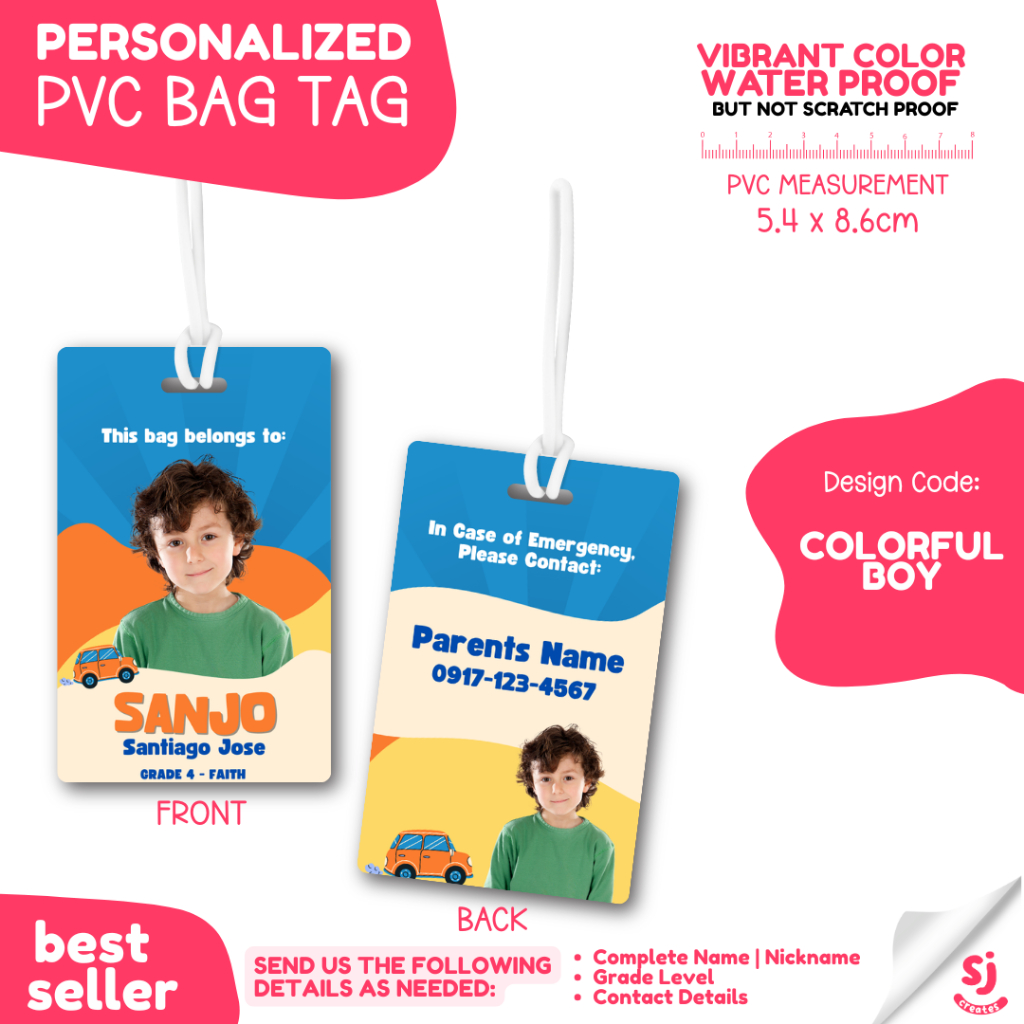 PVC PERSONALIZED PICTURE BAG TAG FOR KIDS | BACK TO SCHOOL BAG TAG | Luggage Bag with Picture