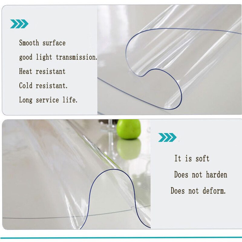 PVC Soft Crystal Clear Plastic Table Cover Vinyl Protector Sheet Transparent Kitchen and Dining