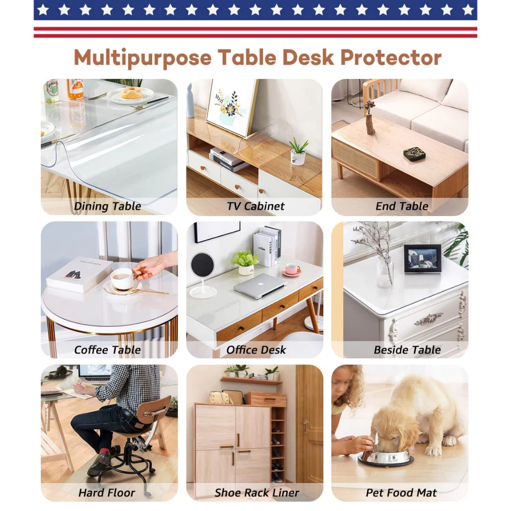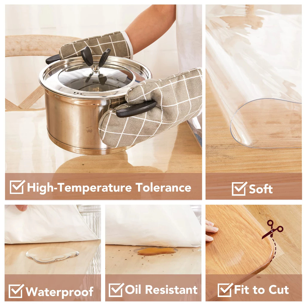 Transparent PVC Table Cloth 2MM Clear Table Mat Waterproof Oilproof Table Cover for 4/6/8/10 Seats