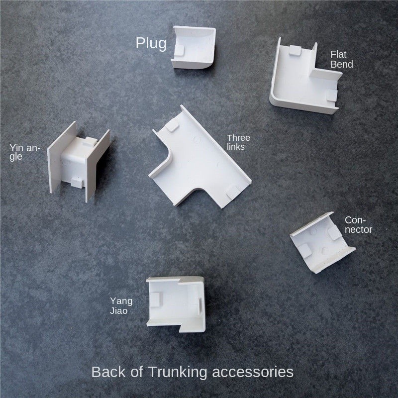 PVC Trunking Accessories Flat Curved Angle Negative Angle Tee Joint Plug Terminal Outer Angle Elbow Open-Mounted Trunking Accessories