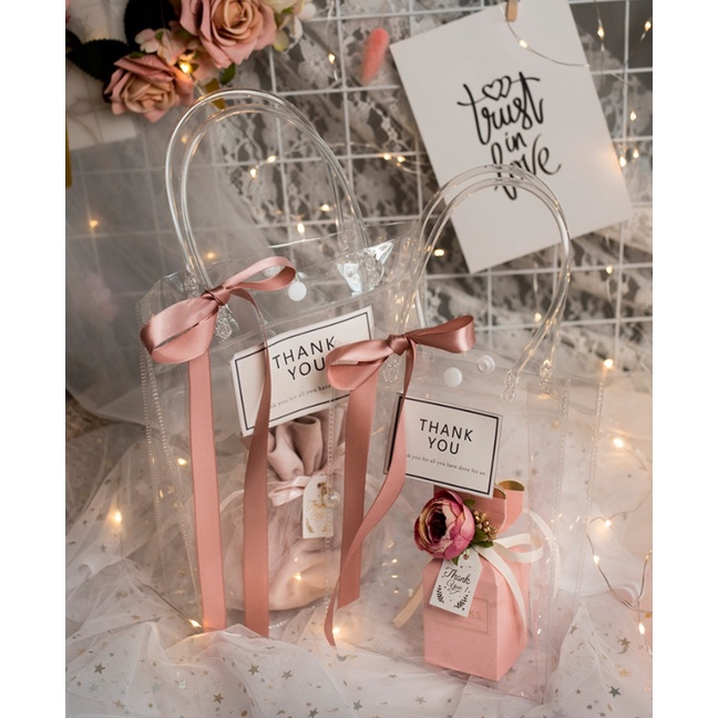 PVC/ plastic transparent Tote handbag gift plastic bag gift packaging transparent bag
