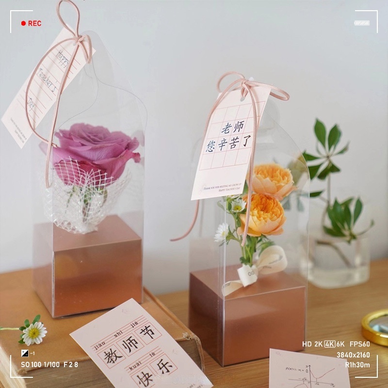 PVC transparent panoramic rose box lighthouse portable flower arrangement case PVC CASE