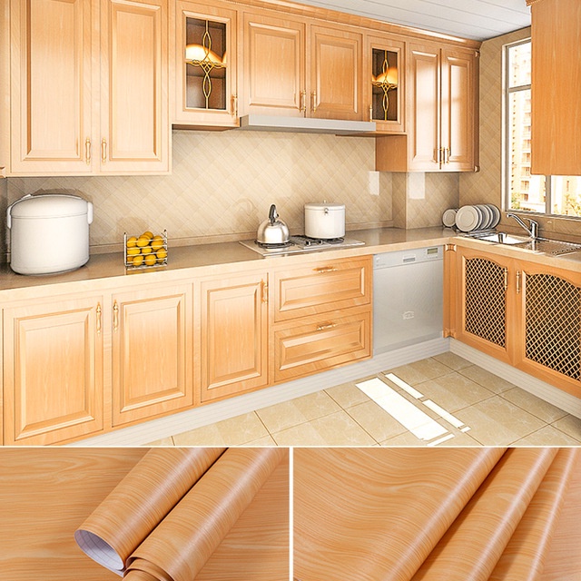 PVC wood sticker waterproof wooden furniture decor self adhesive and moisture proof door cabinet table wallpaper