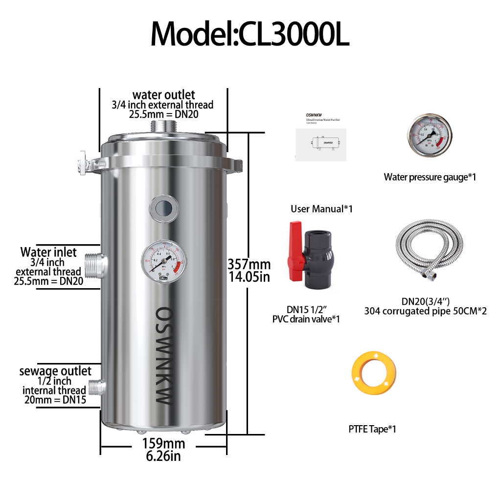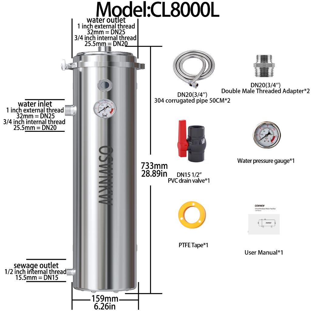 PVDF water purifier, whole house water filter, 0.01um water filter, with a lifespan of over 5 years