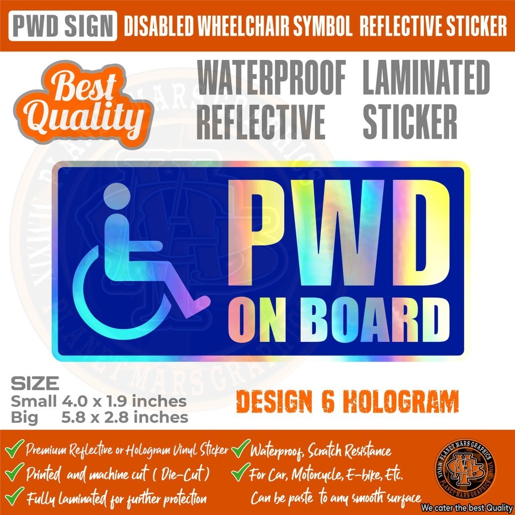 PWD DRIVER ON BOARD REFLECTIVE CAR STICKER SIGN Disabled Wheelchair Symbol BLUE Handicapped sticker