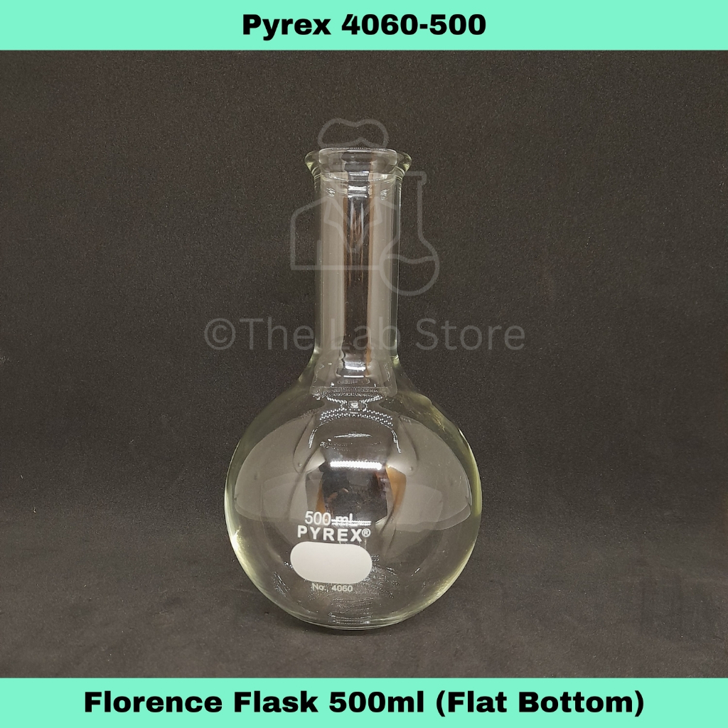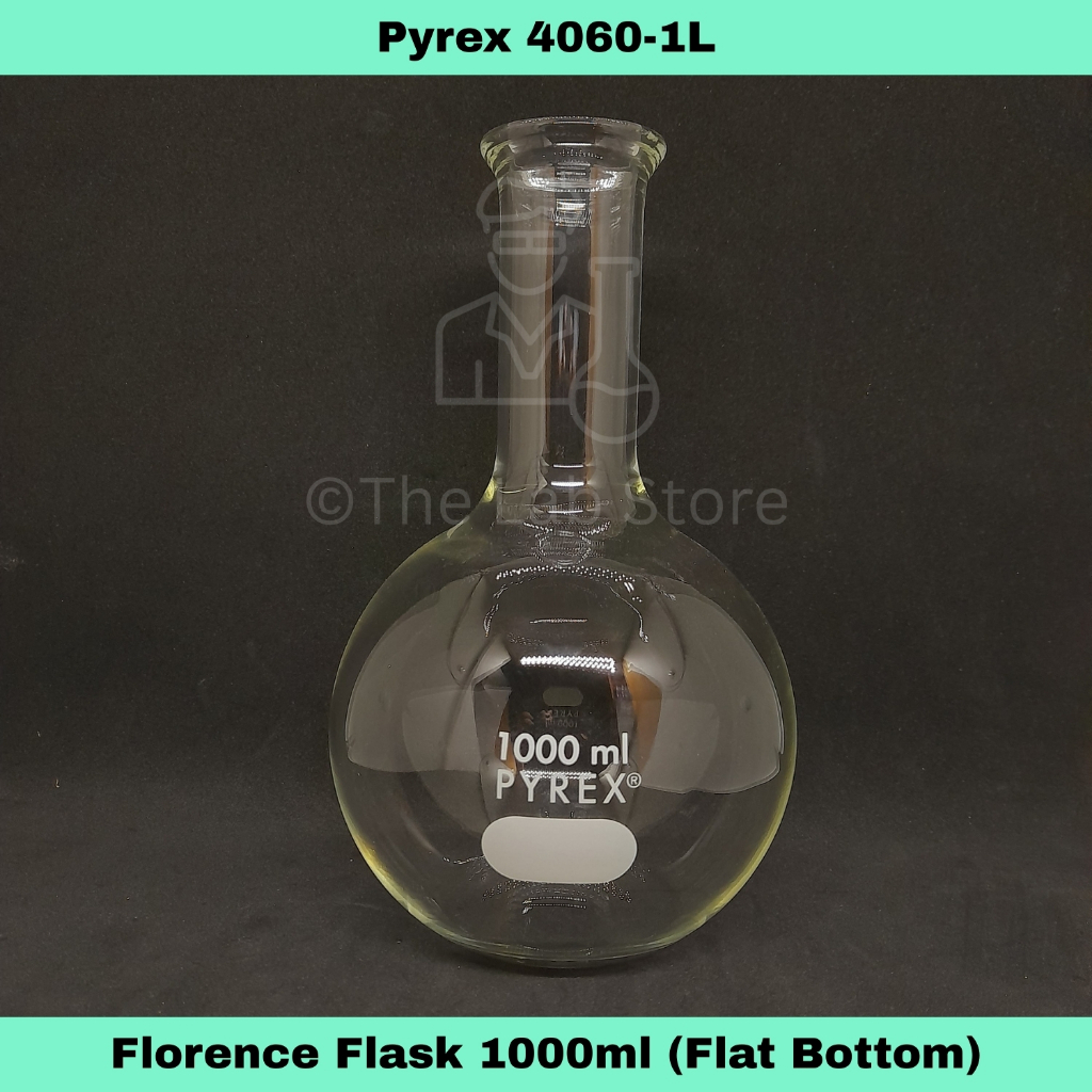 PYREX Florence Flask, Glass Boiling Flask, Flat Bottom