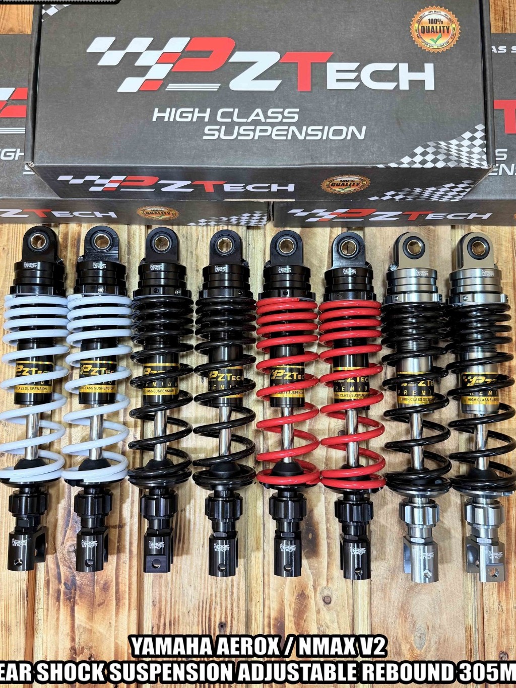 PZ TECH A2-SERIES AEROX,NMAX V2 REAR SHOCK SUSPENSION ADJUSTABLE REBOUND 305MM 100% MIOLS1