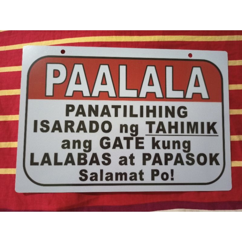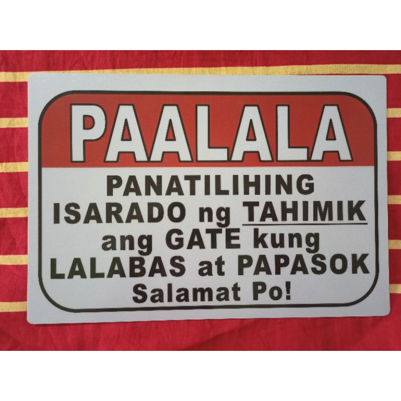 Paalala Isarado ng tahimik ang Gate SIGNAGE Material: PVC Plastic (like ATM and ID) 7.8x11 inches