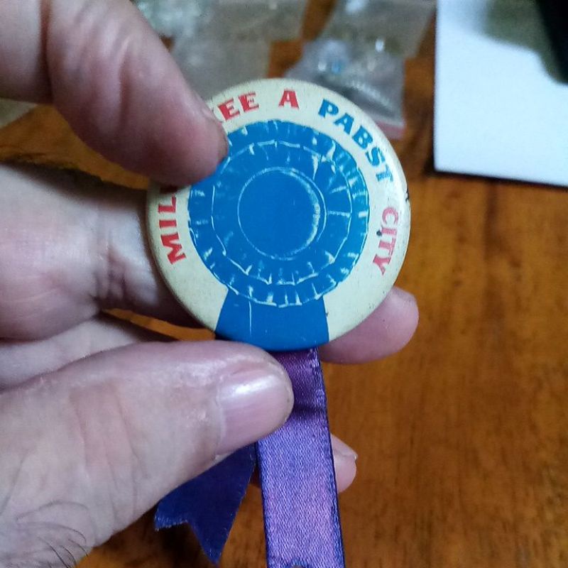 Pabst Blue Ribbon Beer Brewery Pin Antique Back Brewermania USA Button