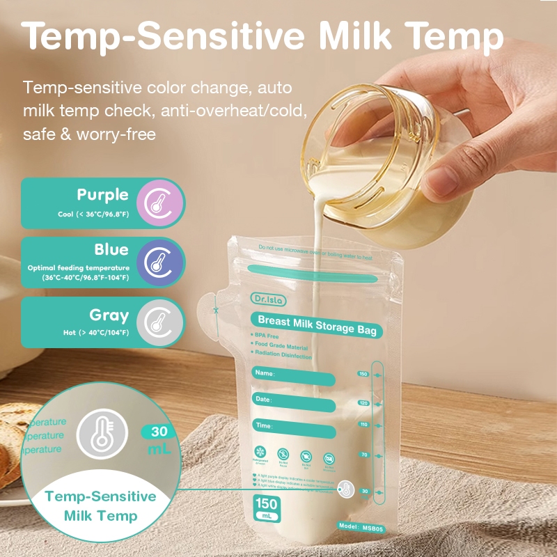 Dr.isla MSB05X 30pcs Breast Milk Storage Bag BPA Free High Temperature Discoloration 150ml