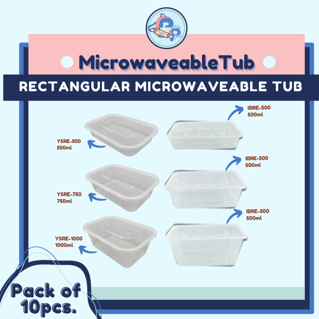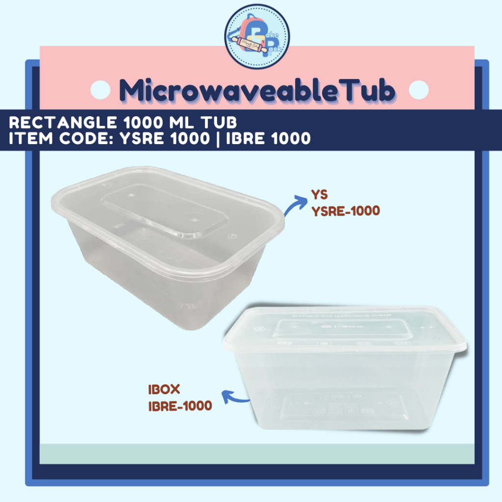 Pack of 100 - Rectangular Microwaveable Tub (500ml/ 750ml/ 1000ml)