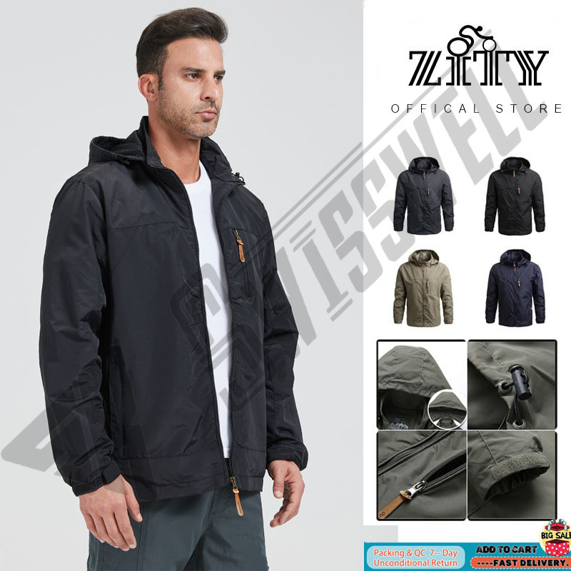 Packable Hiking Rain Jacket Waterproof & Windproof Outer Shell with Adjustable Hood