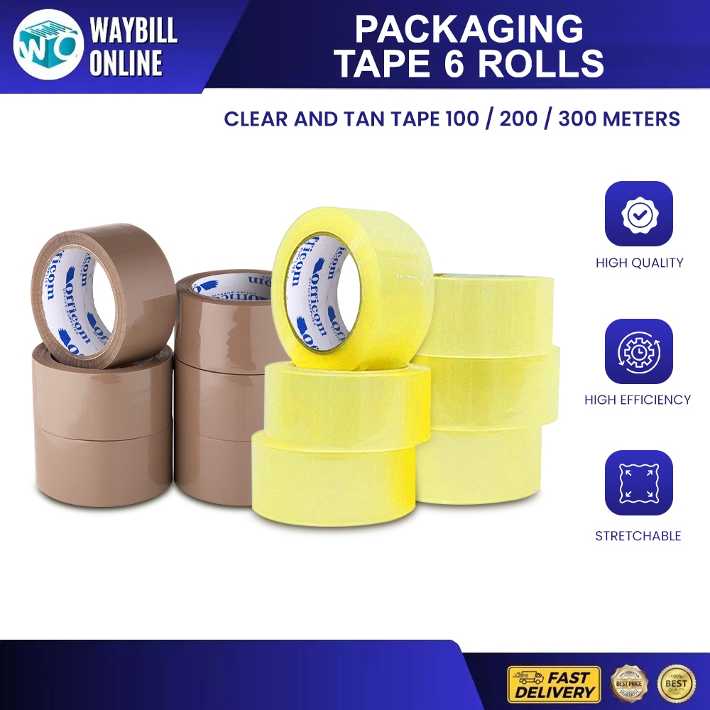 Officom 6 ROLLS Packaging Tape 100m/200m/300m | Clear & Brown | Strong Seal Heavy Duty Packing