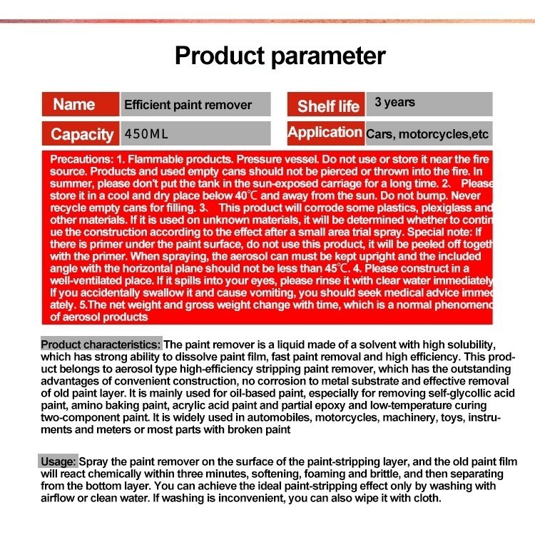 Paint Remover Powerful Spray Paint Remover for Metal 450ml For Automotive Quick Paint Remover Spray