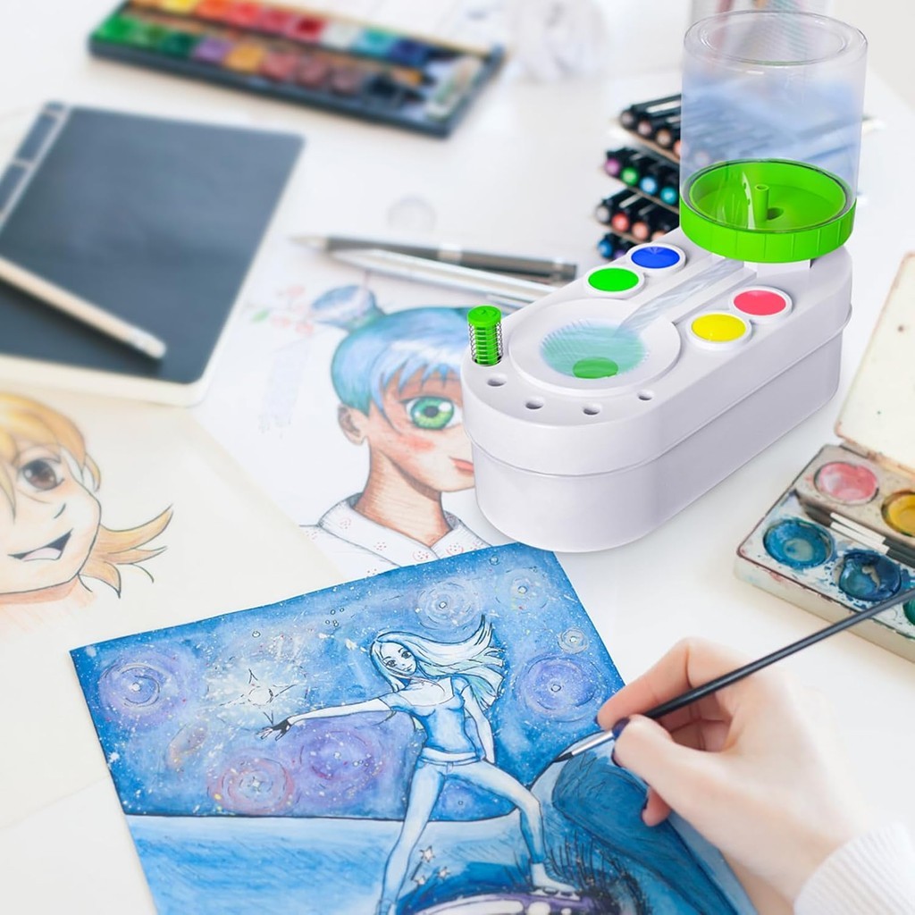 Paint brush cleaner, paint brush set rinser, with drain and brush holder, water circulation brush set cleaning rinse cup, suitable for acrylic, watercolor, water-based painting sup