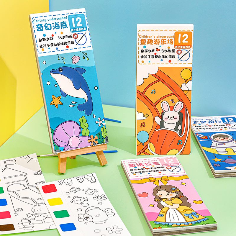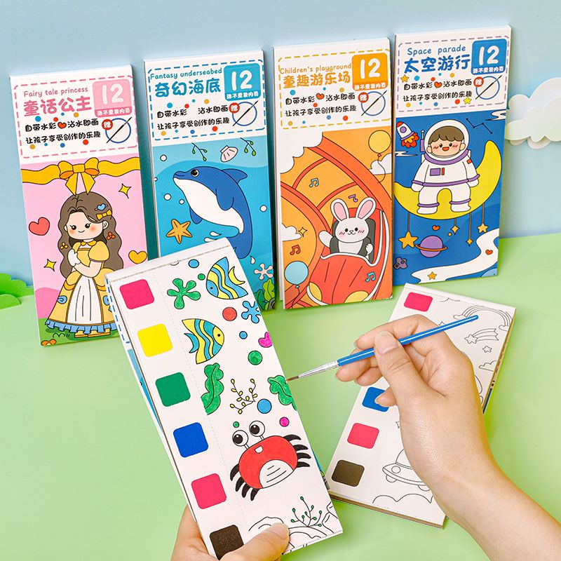 Painting Water Coloring Book Watercolor Book DIY Handmade Portable Note Book Watercolor Paintbrush