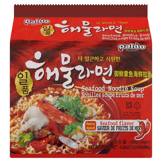 Paldo Seafood Noodle Soup Spicy Seafood Flavor 5 x 120g