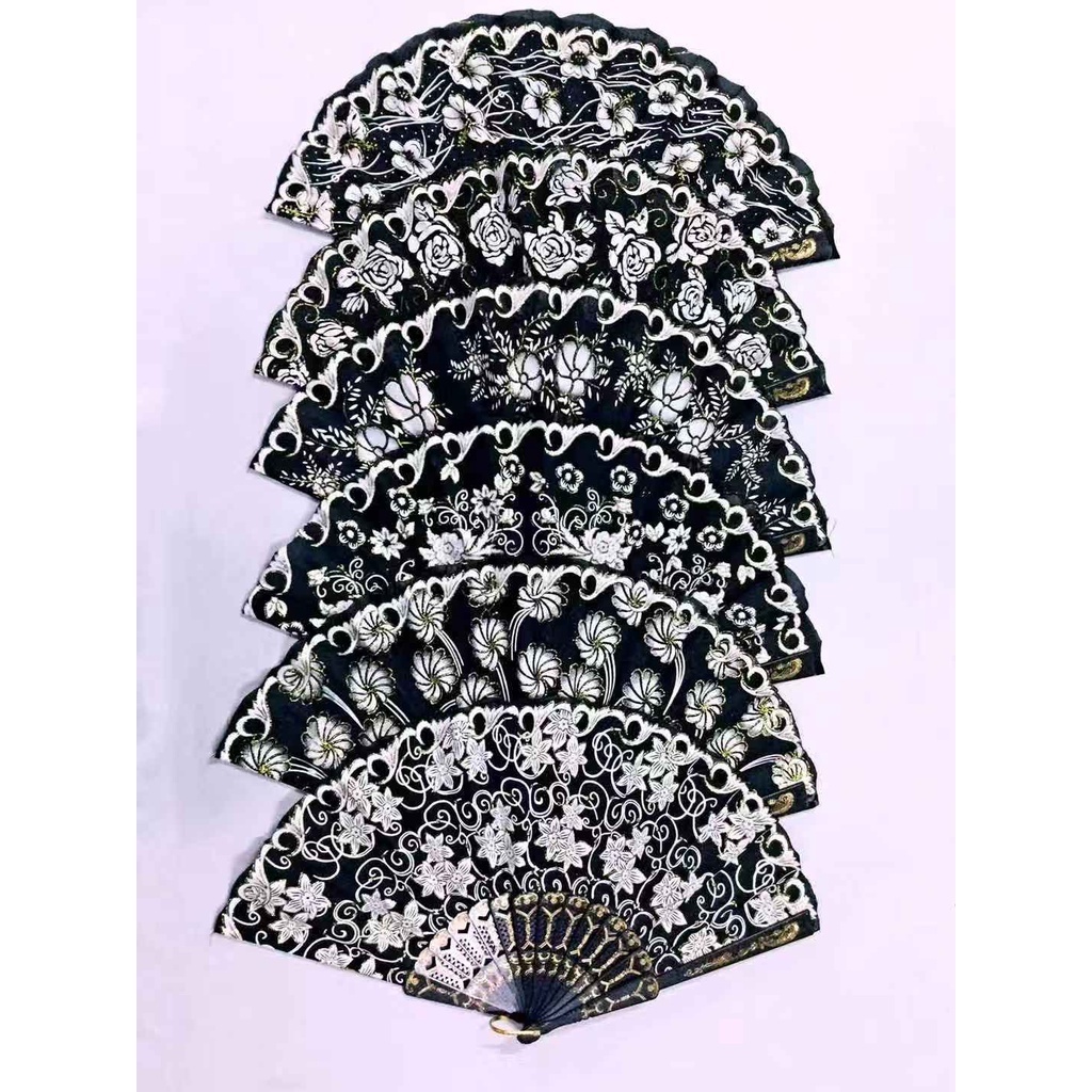 Pamaypay o Abanico Black floral with Gold Glitters Folding Fan