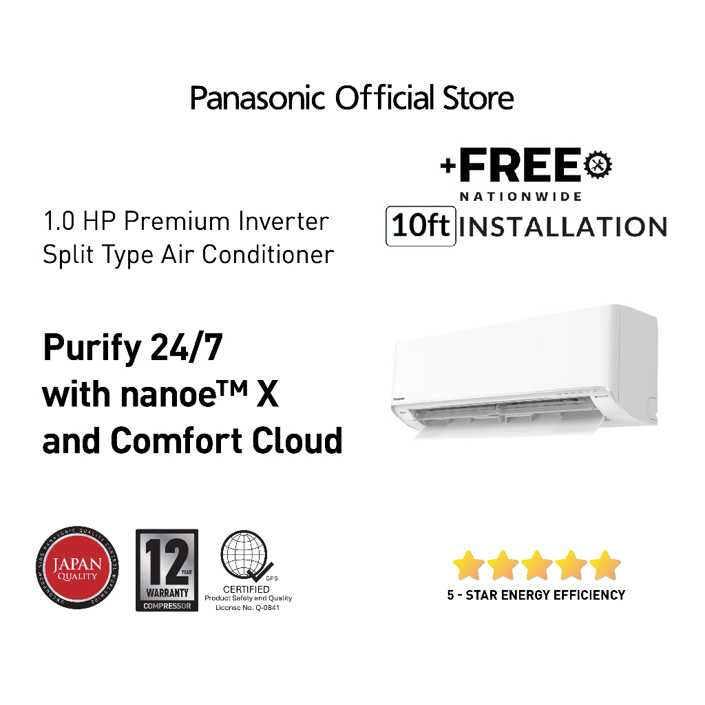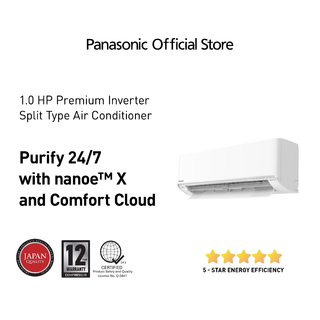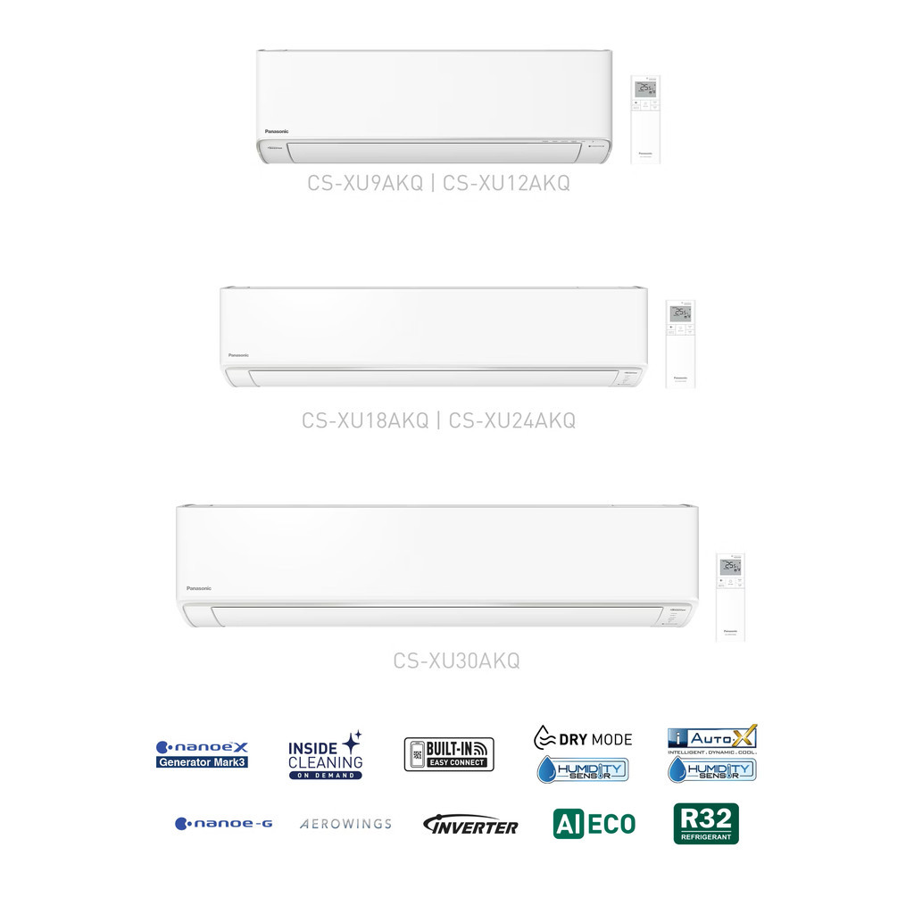 Panasonic CS-XU9AKQ 1.0HP Premium Inverter AERO SERIES Single - Split Type Aircon