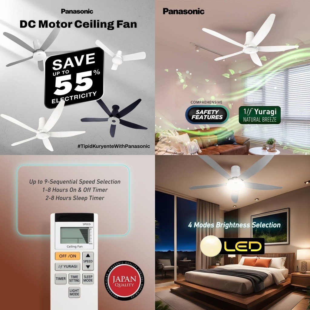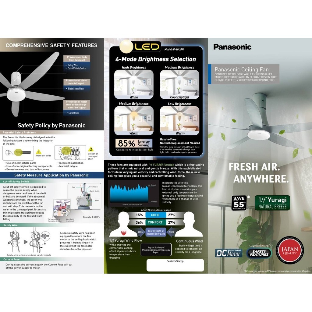 Panasonic F-60UFN 60 inch 5-Blade DC Motor Ceiling Fan with LED Lighting