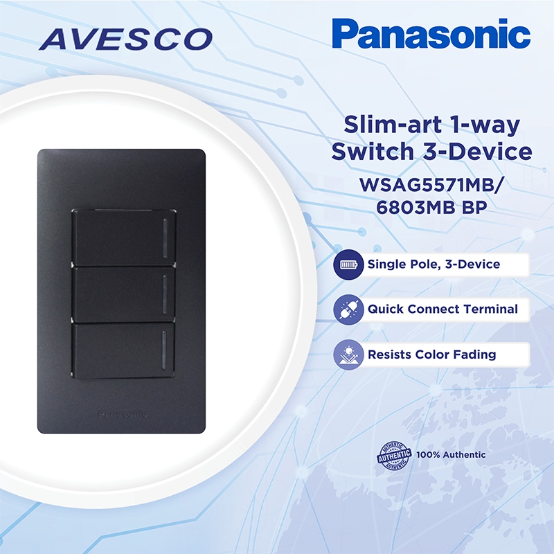 Panasonic Slim Art ILLUMINATED Series 1-3 Device 1 Way Switch METALIC BLACK | ILLUMINATED SWITCH
