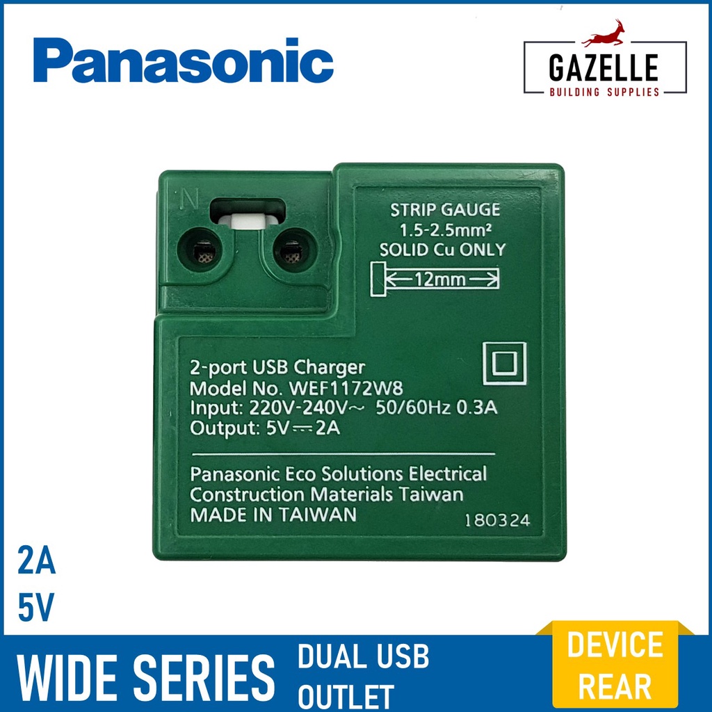 Panasonic Wide Series USB Outlets 5V 2-2.4A Fast Charge
