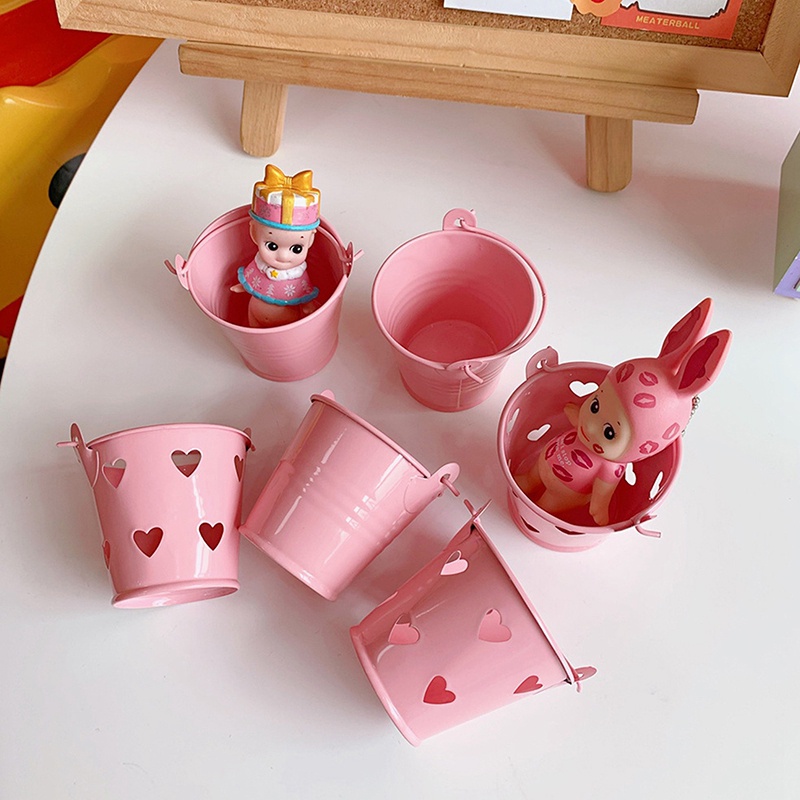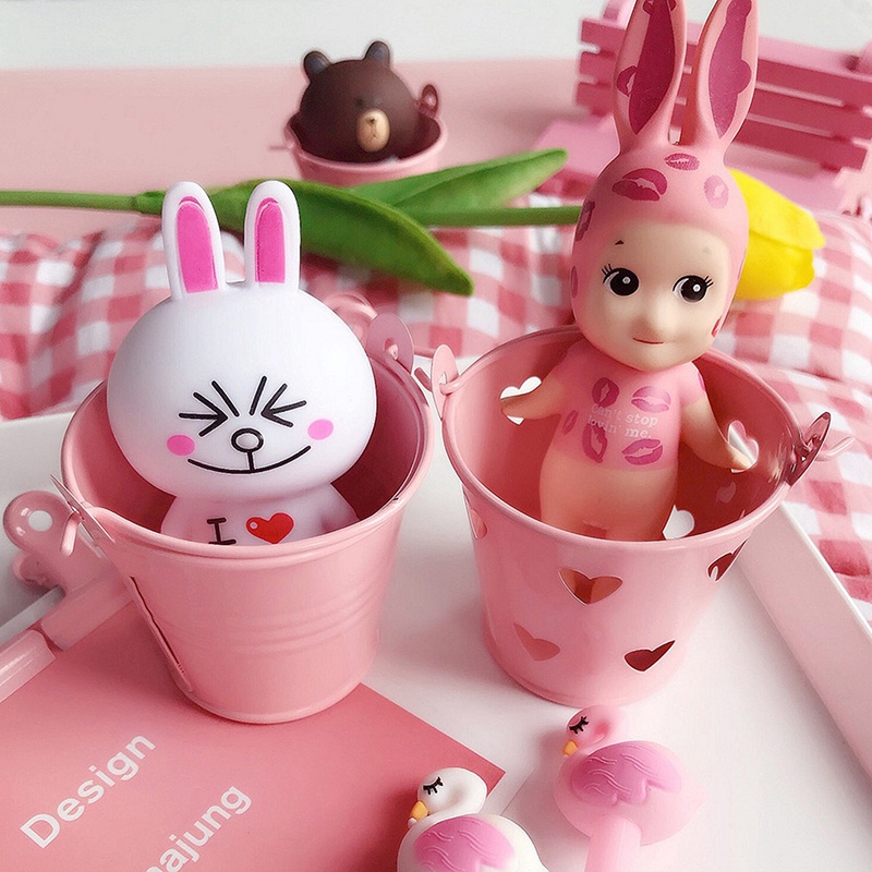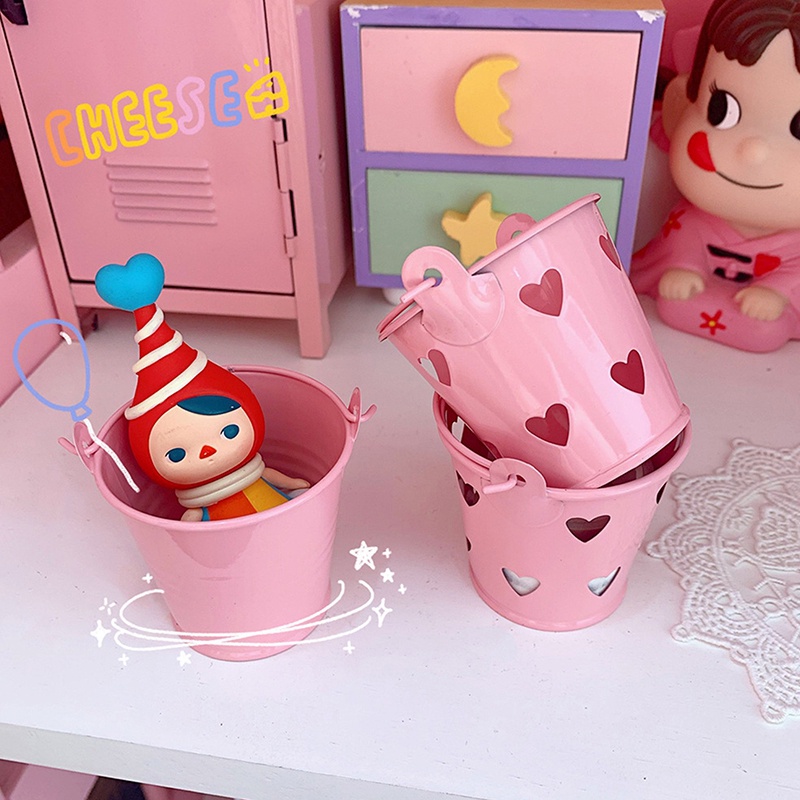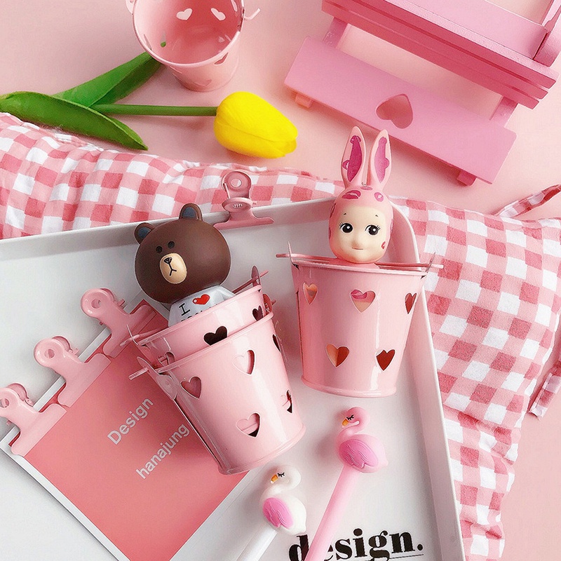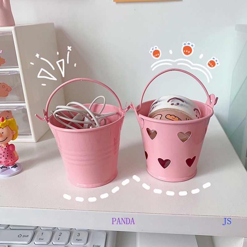 Panda Kawaii Pink Pencil Holder Metal Bucket Pen Container Cup Stationery Makeup Brush Holder Stand for Women Girl Students