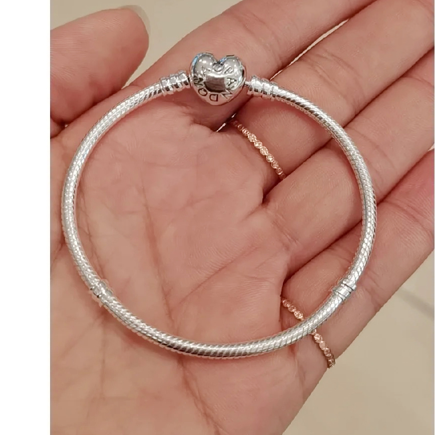 P Bracelets Classic 925 Silver Heart Base Bracelet DIY Charms Bracelets