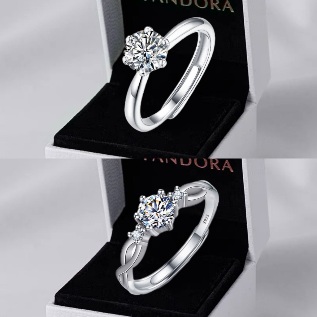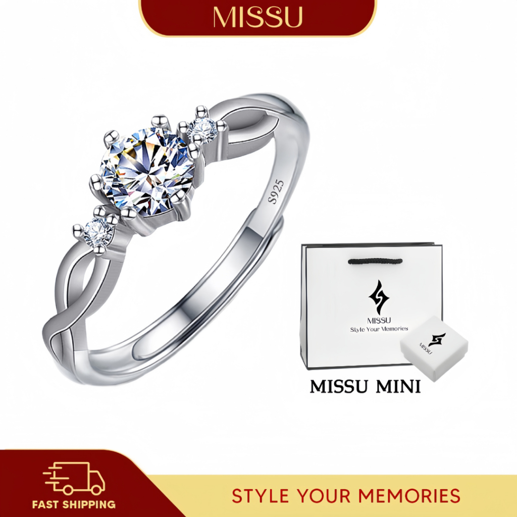 Pandora Inspired Missu Promise Ring with Box Paper Bag Adjustable 925 Silver Engagement Wedding Ring