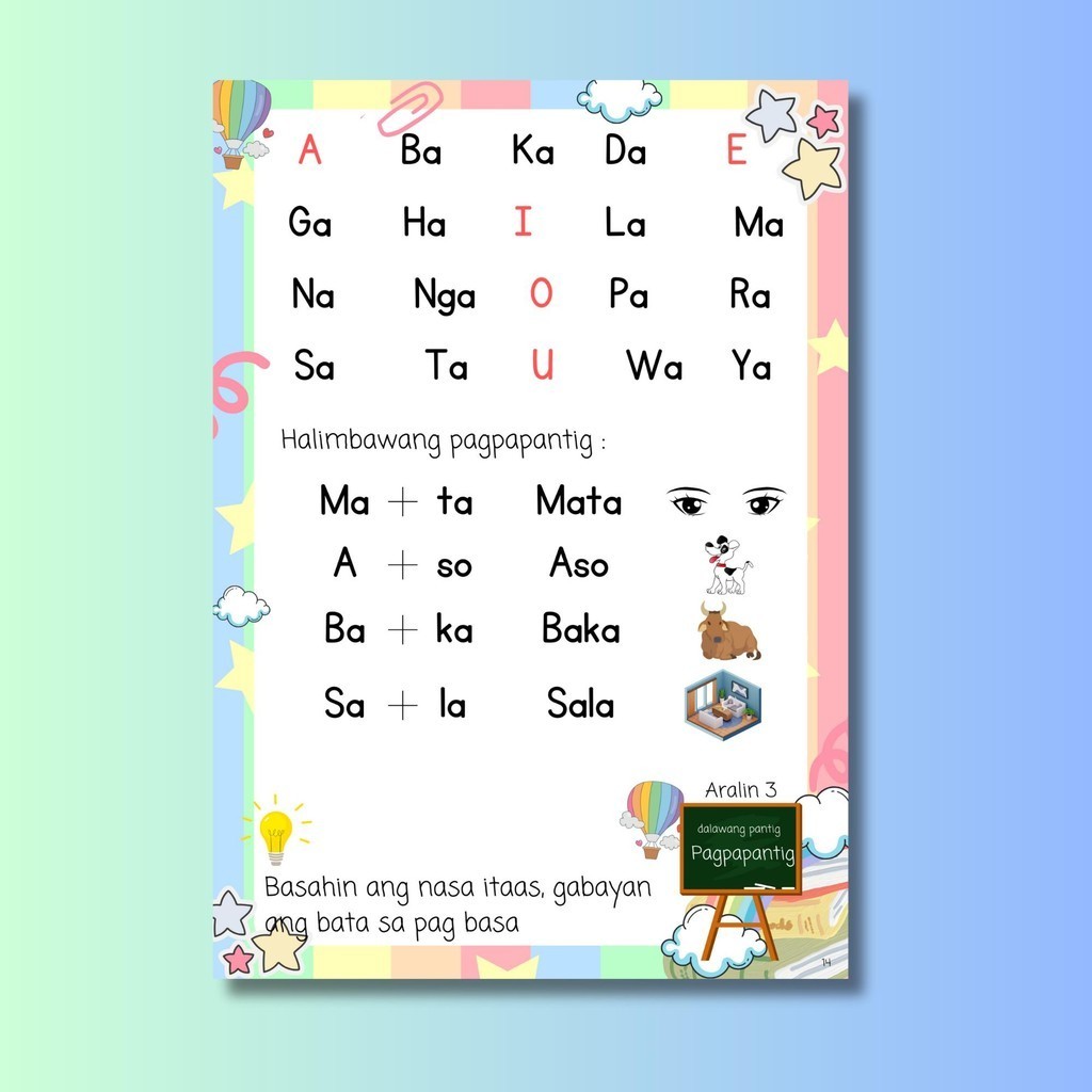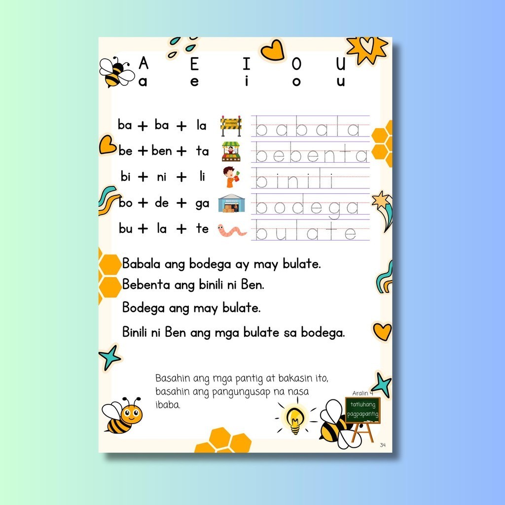 Panimulang Pagbasa sa Tagalog Reading for Beginners workbook for preschool kinder grade 1 2 years