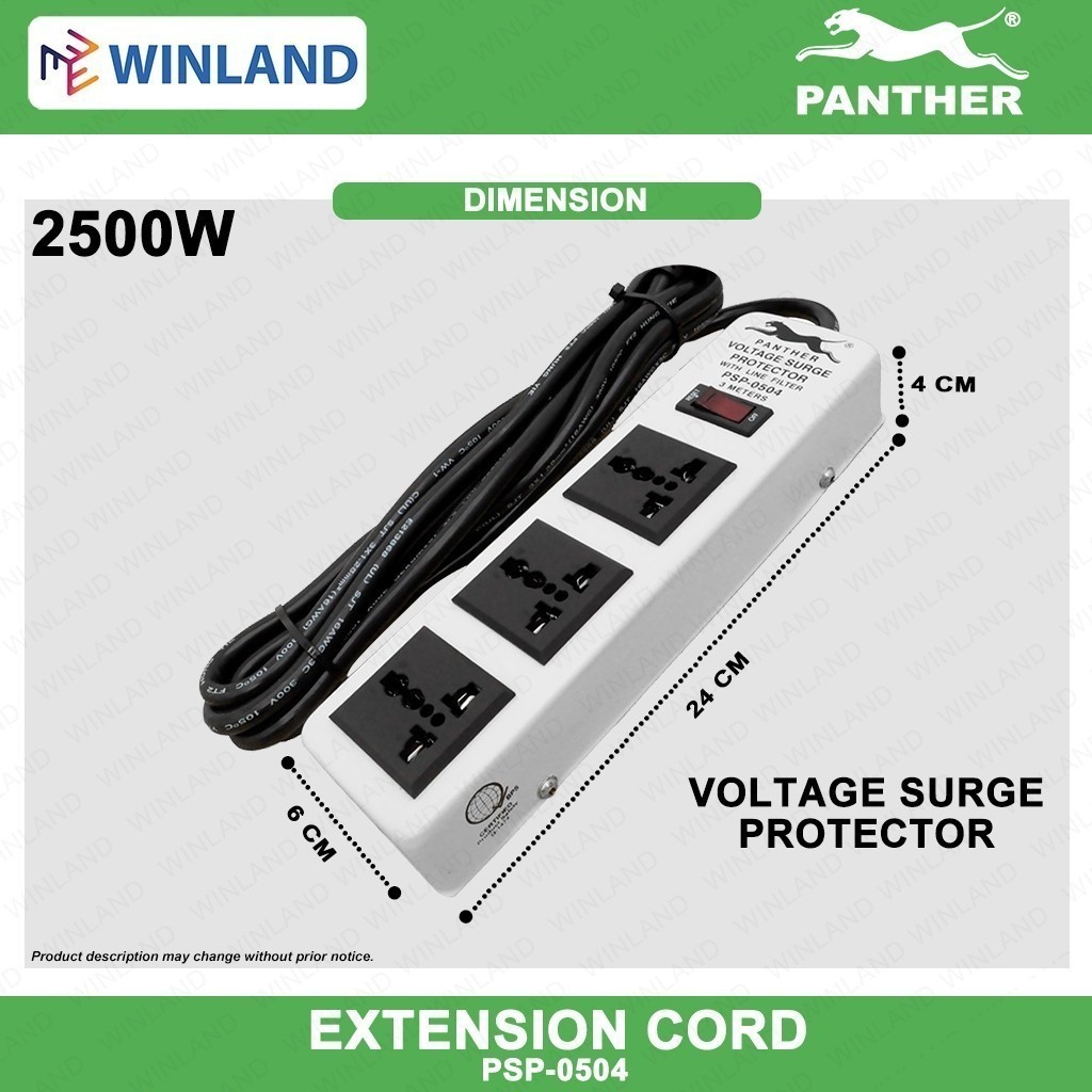 Panther by Winland Power Extension Cord Wire Outlet w/ Voltage Surge & Overload Protector PSP-0504