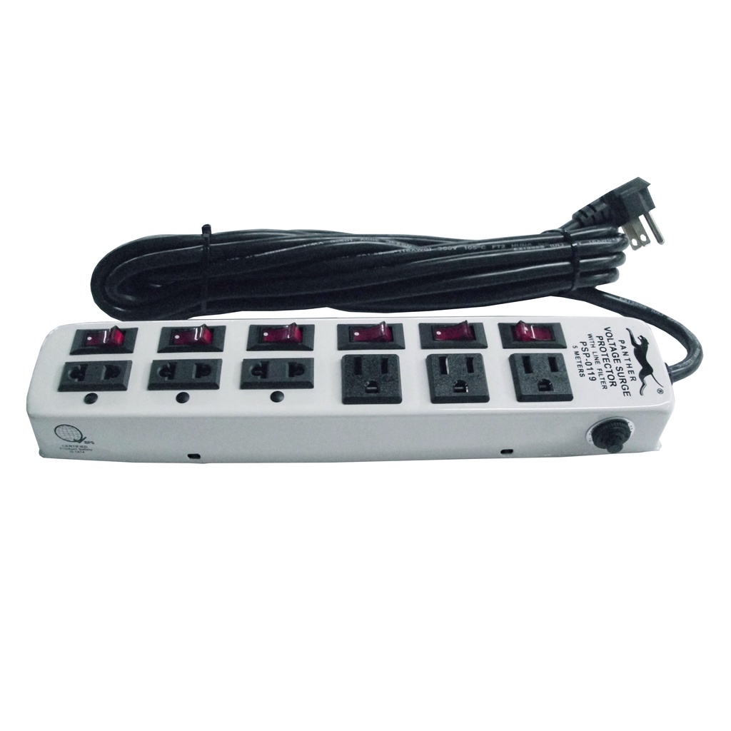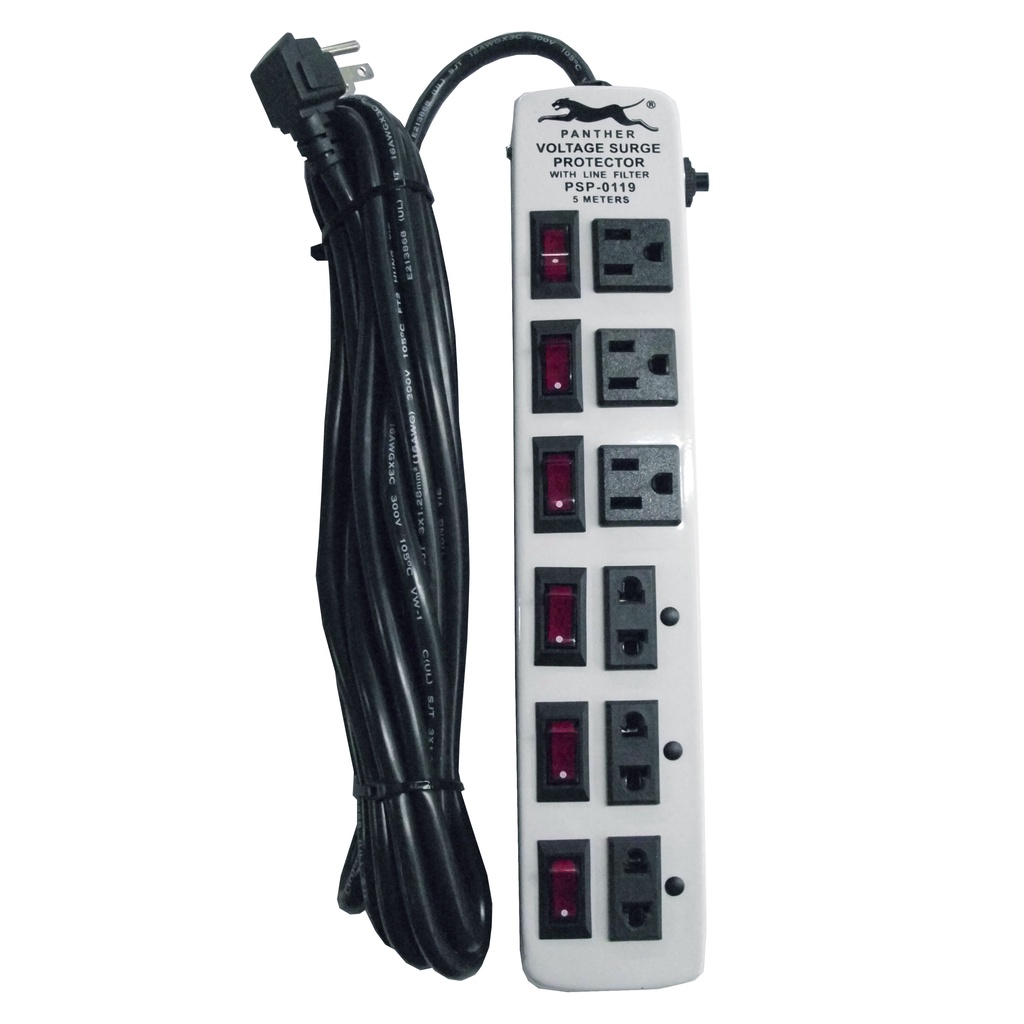 Panther PSP 0119 Extension Cord w/ Voltage Surge Protector 6 Outlets w/ Individual Switch 5 Meters