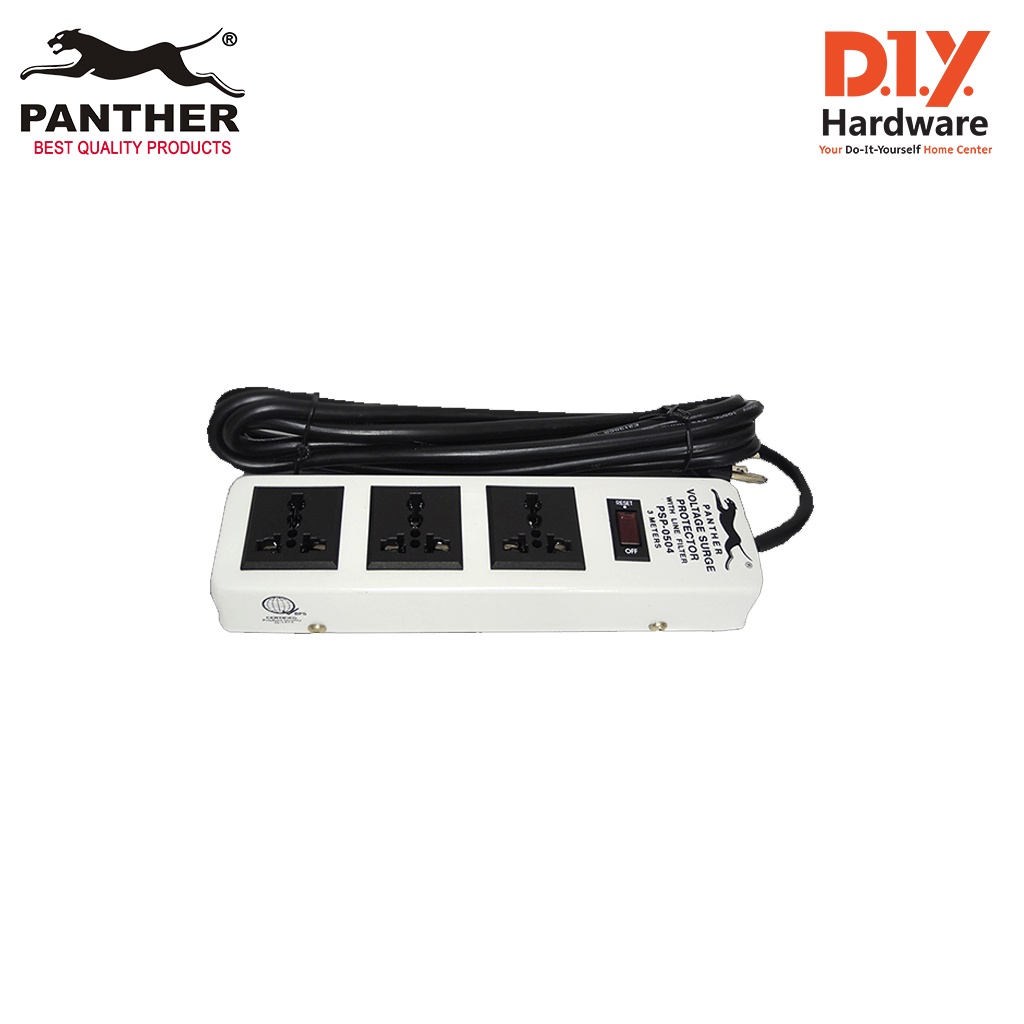 Panther PSP 0504 Extension Cord w/ Voltage Surge Protector 1 Switch Breaker 3 Outlets 3 Meters