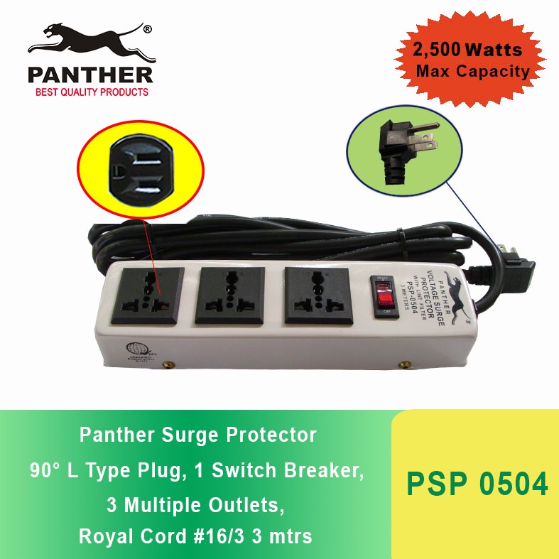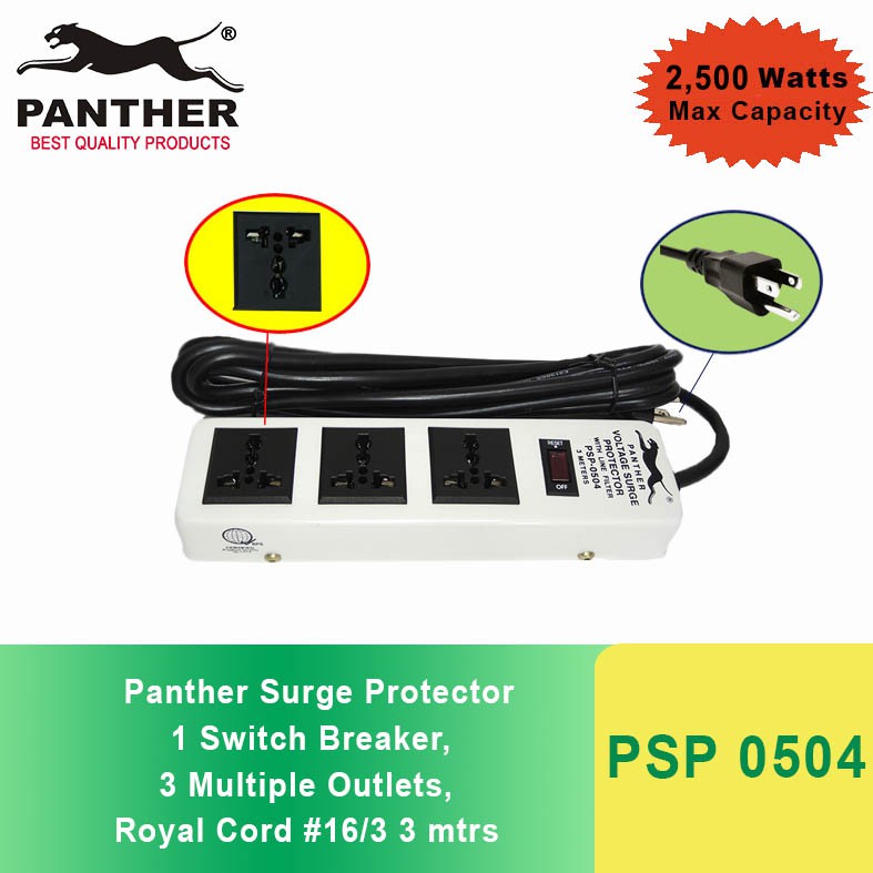 Panther PSP 0504 Extension Cord w/ Voltage Surge Protector 1 Switch Breaker 3 Outlets 3 Meters